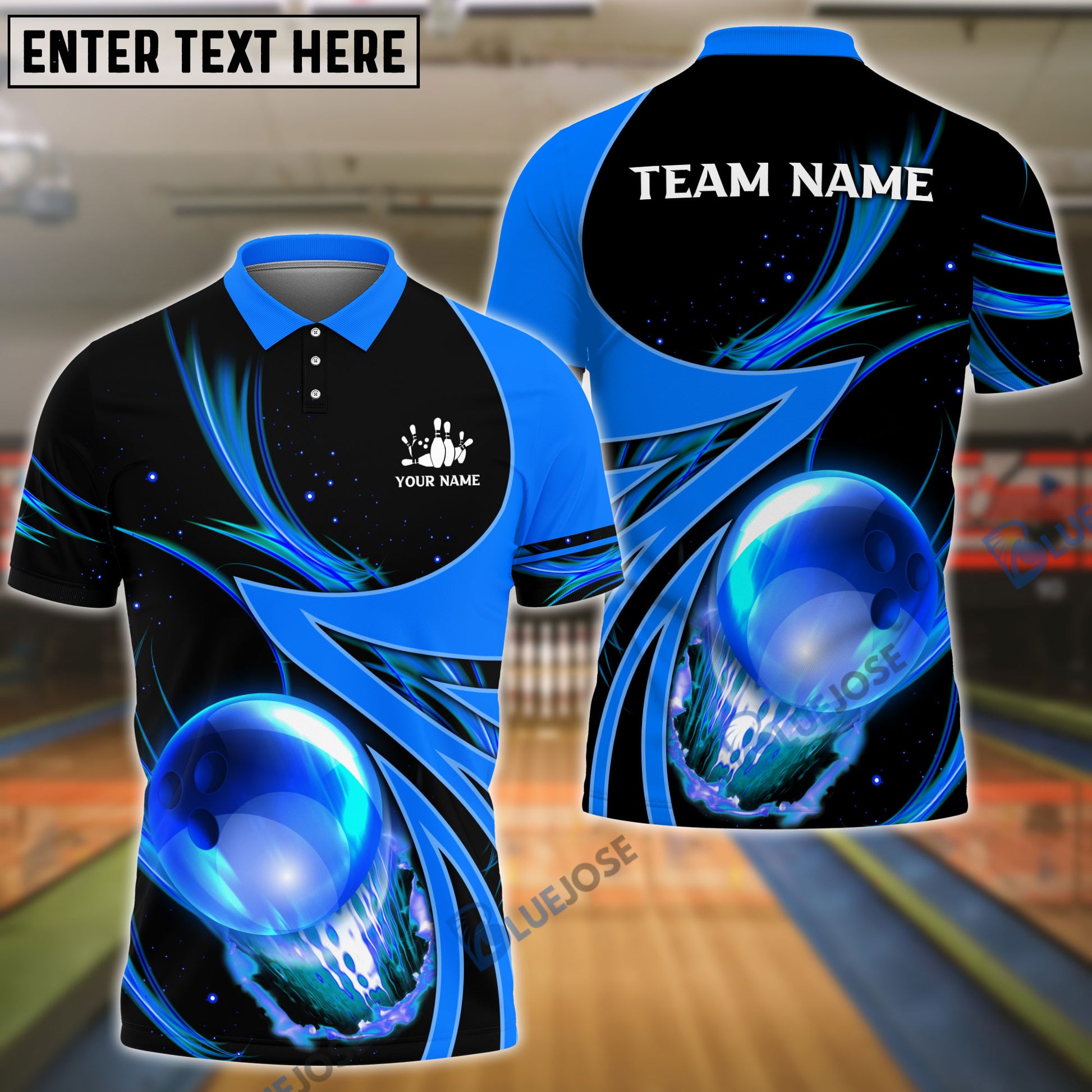 BlueJoses Bowling And Pins Galaxy Pattern Customized Name, Team Name 3D Shirt (4 Colors)