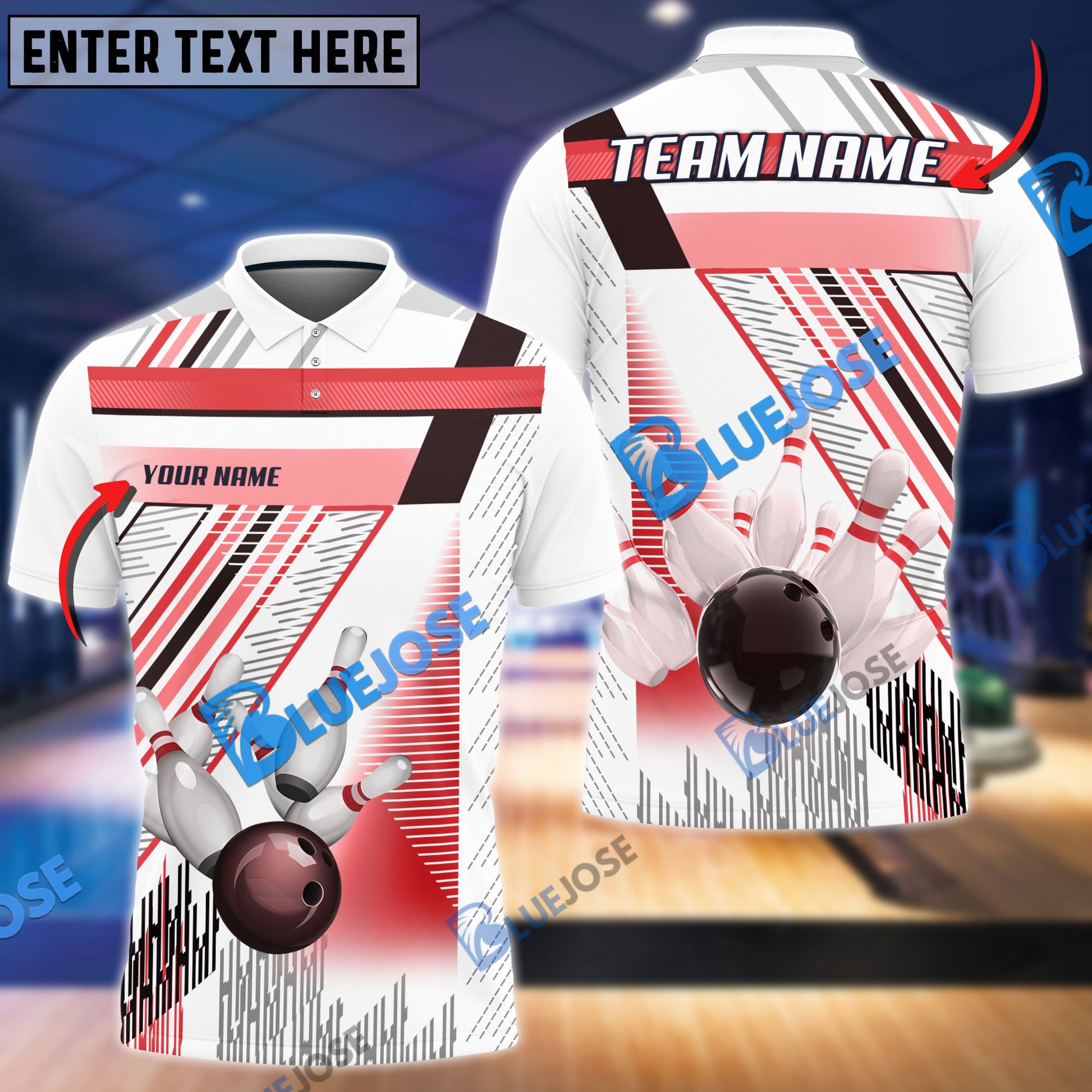 BlueJoses Bowling And Pins Lines Pattern Customized Name 3D Shirt ( 6 Colors)