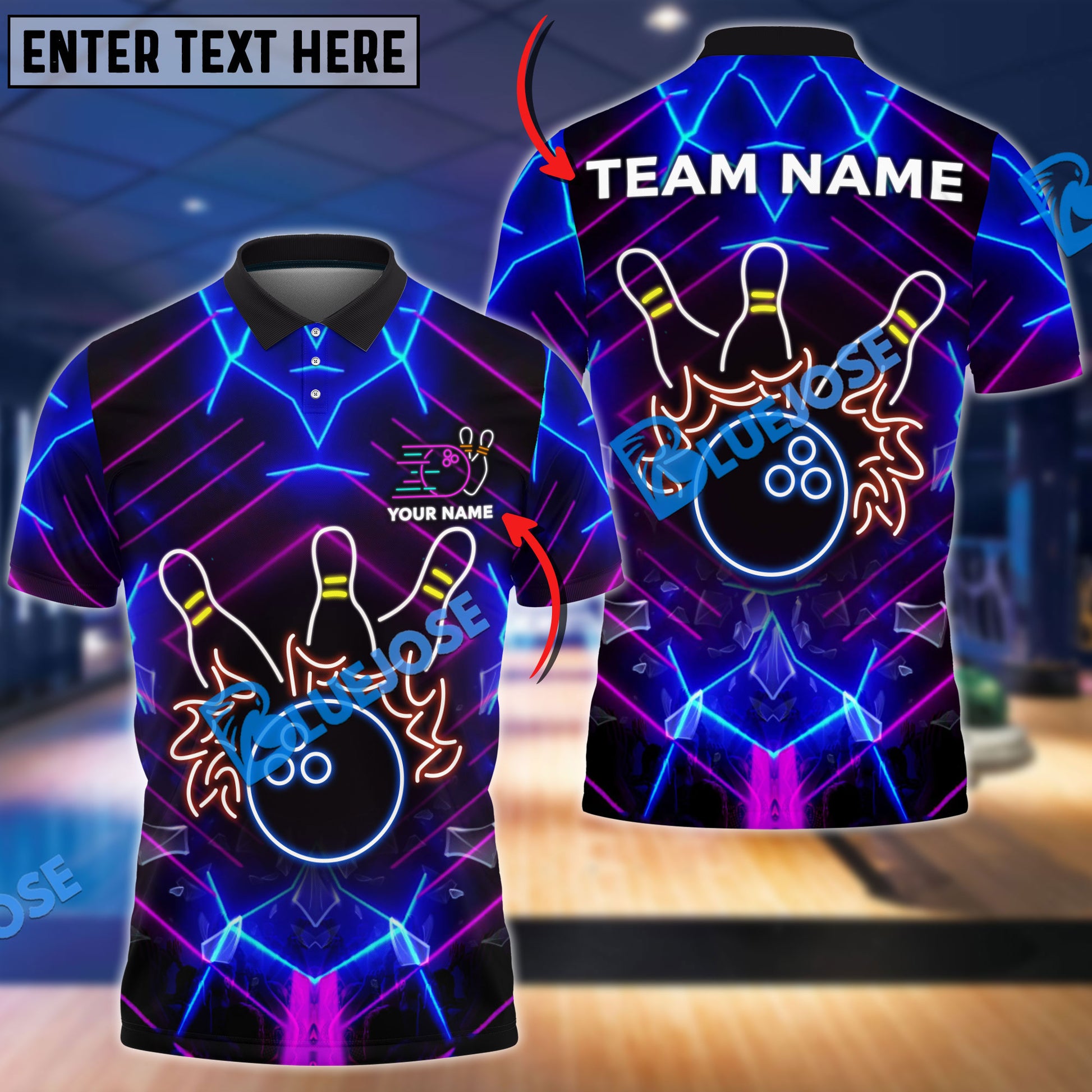 BlueJoses Bowling And Pins Neon Light Style Customized Name, Team Name 3D Shirt