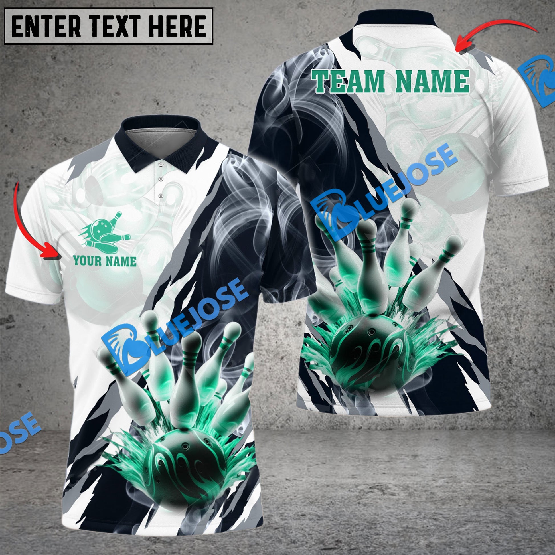 BlueJoses Bowling And Pins Smoke Paint Pattern Multicolor Customized Name 3D Shirt ( 4 Colors )