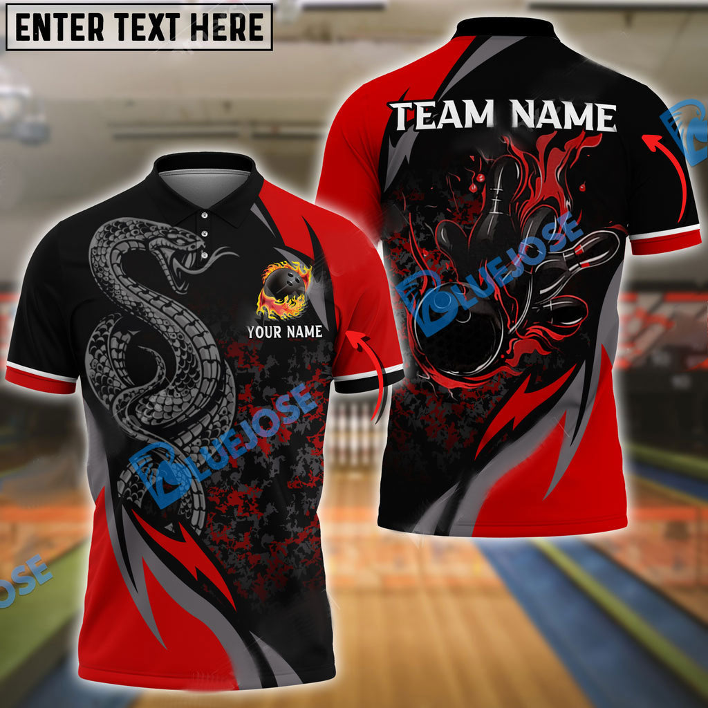 BlueJoses Bowling And Pins Solid Snake Customized Name 3D Shirt ( 6 Colors)