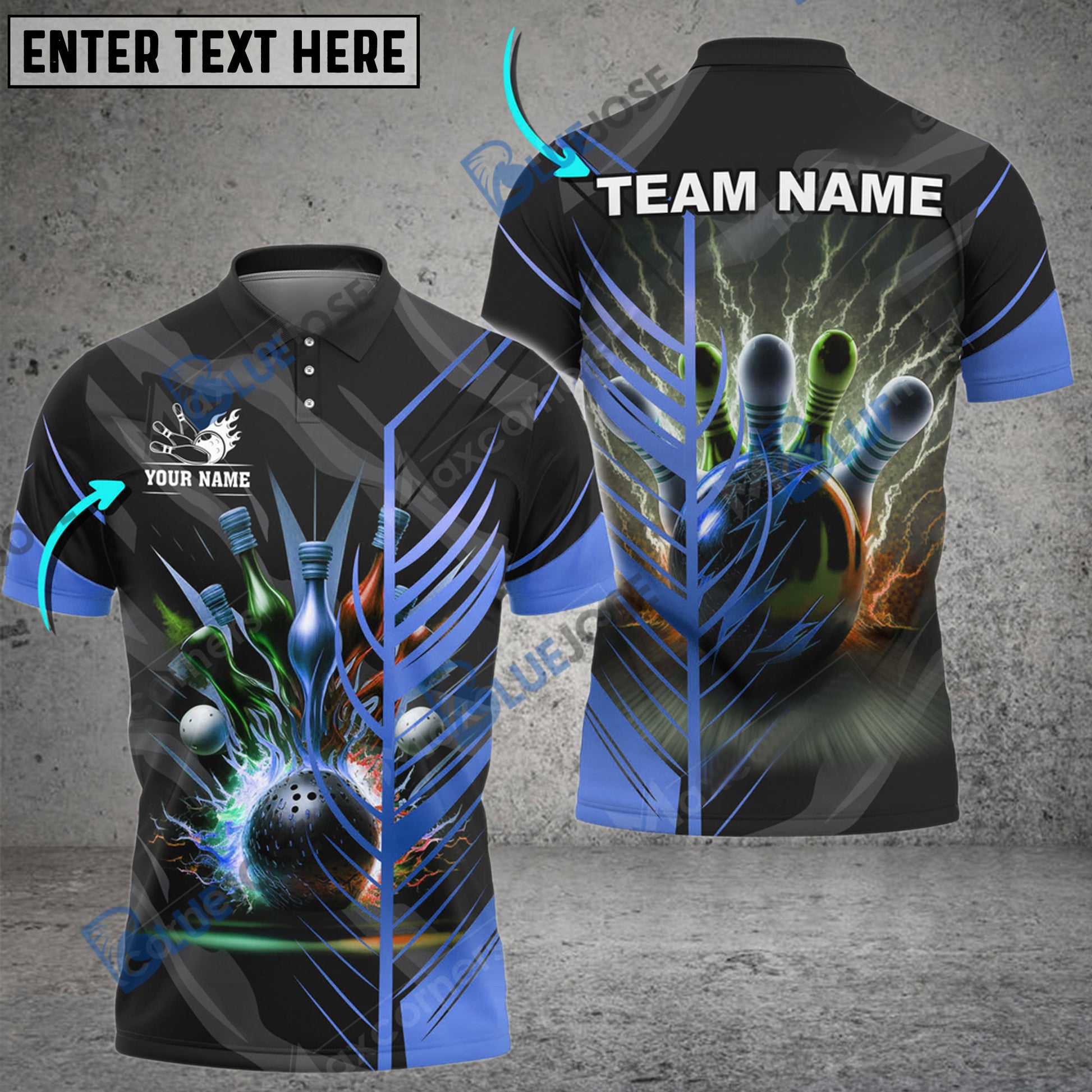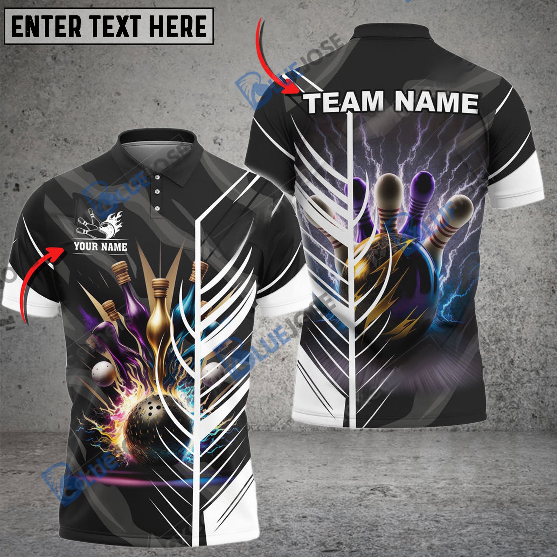 BlueJoses Bowling And Pins Thunder Customized Name 3D Shirt (6 Colors)
