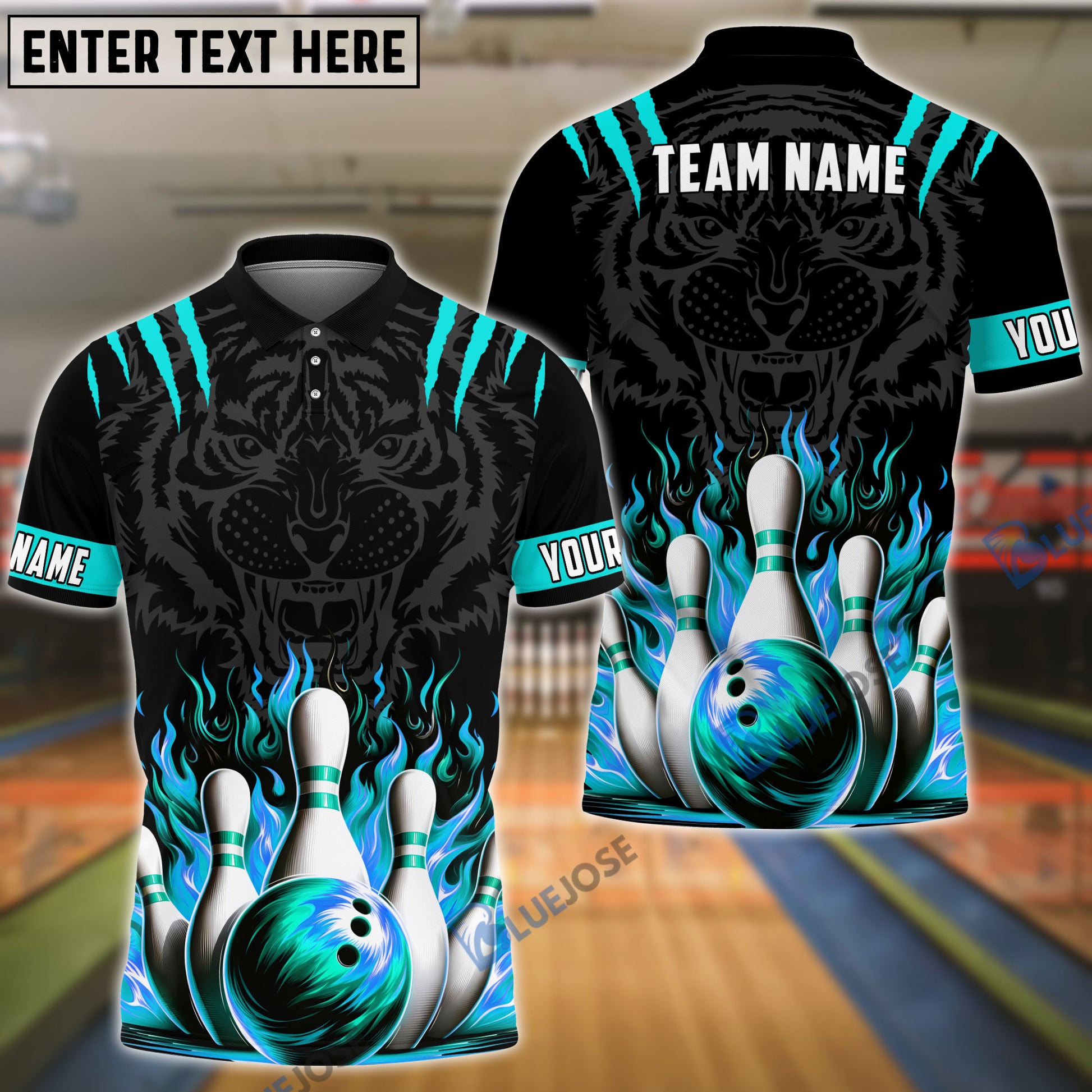 BlueJoses Bowling And Pins Tiger Pattern Customized Name, Team Name 3D Shirt (5 Colors)