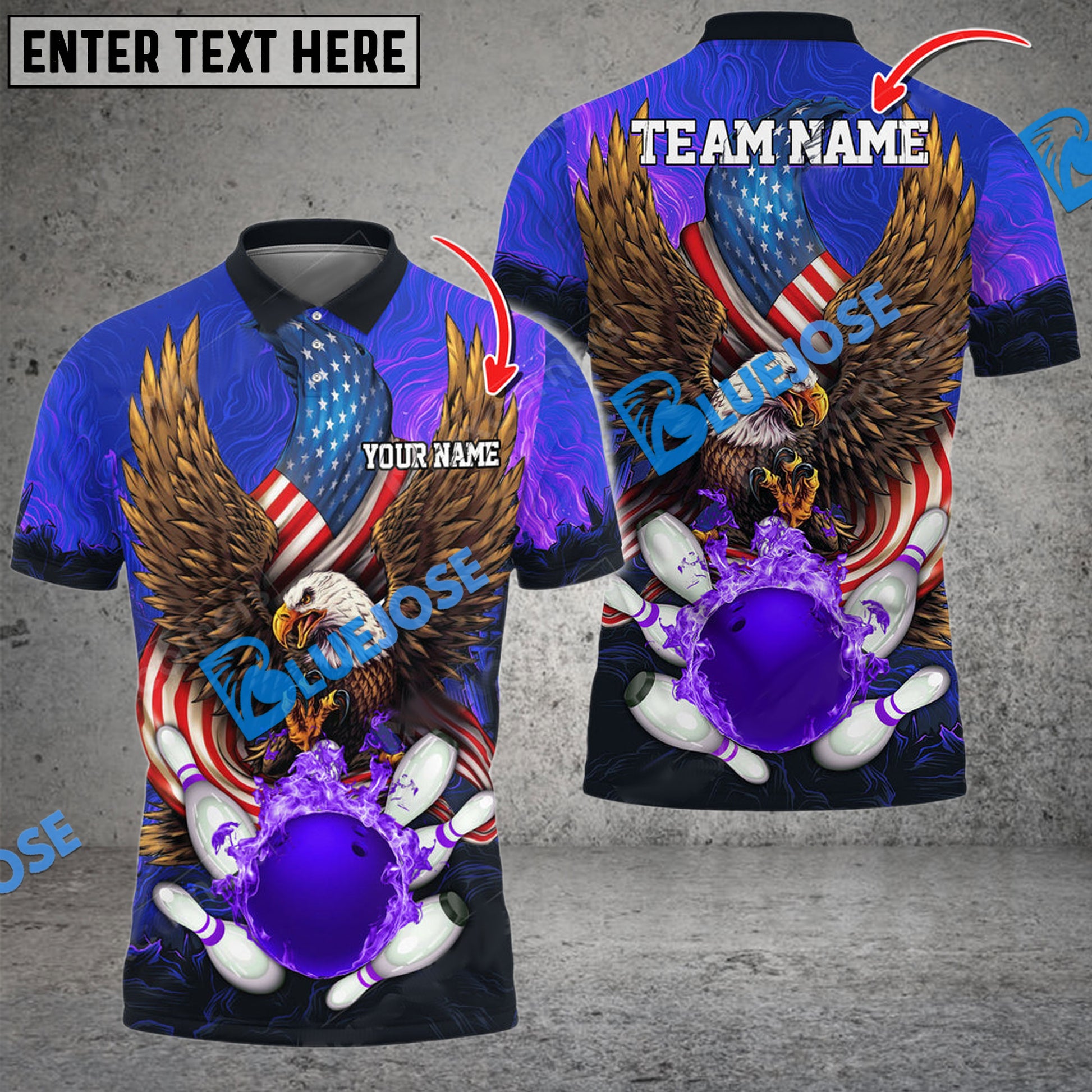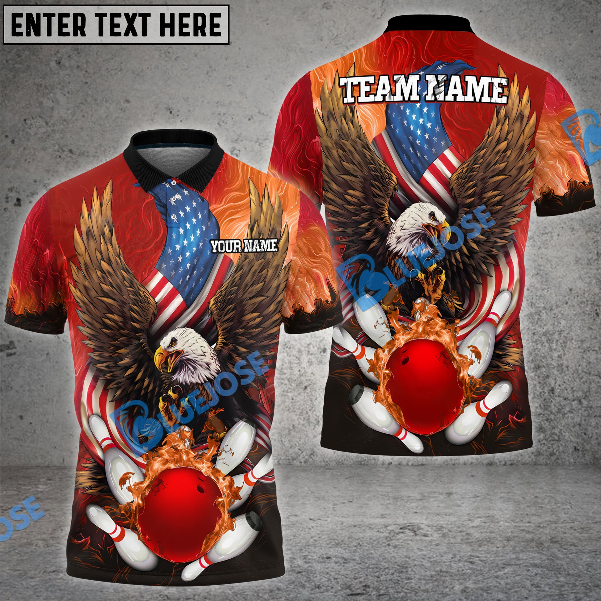 BlueJoses Bowling And Pins USA Eagle Flag Multicolor Customized Name 3D Shirt ( 4 Colors )