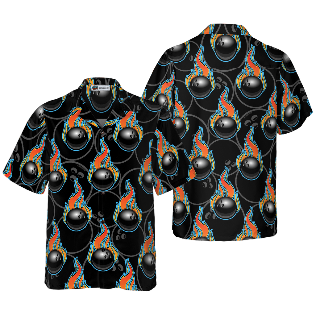 BlueJoses Bowling In Fire Seamless Pattern Hawaiian Shirt