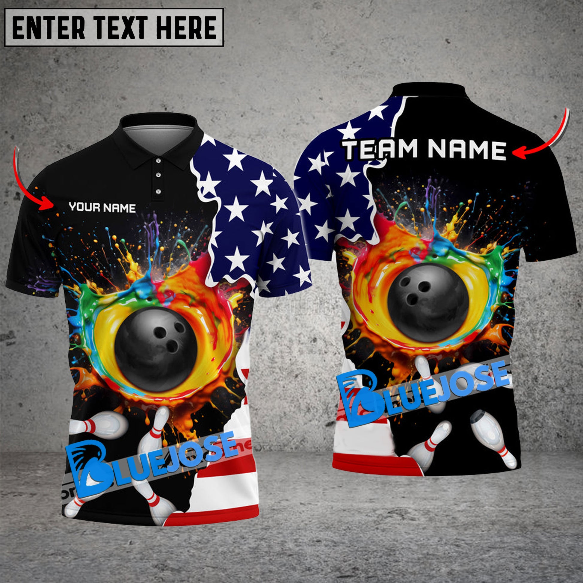 BlueJoses Bowling Paint American Flag Customized Name, Team Name 3D Shirt