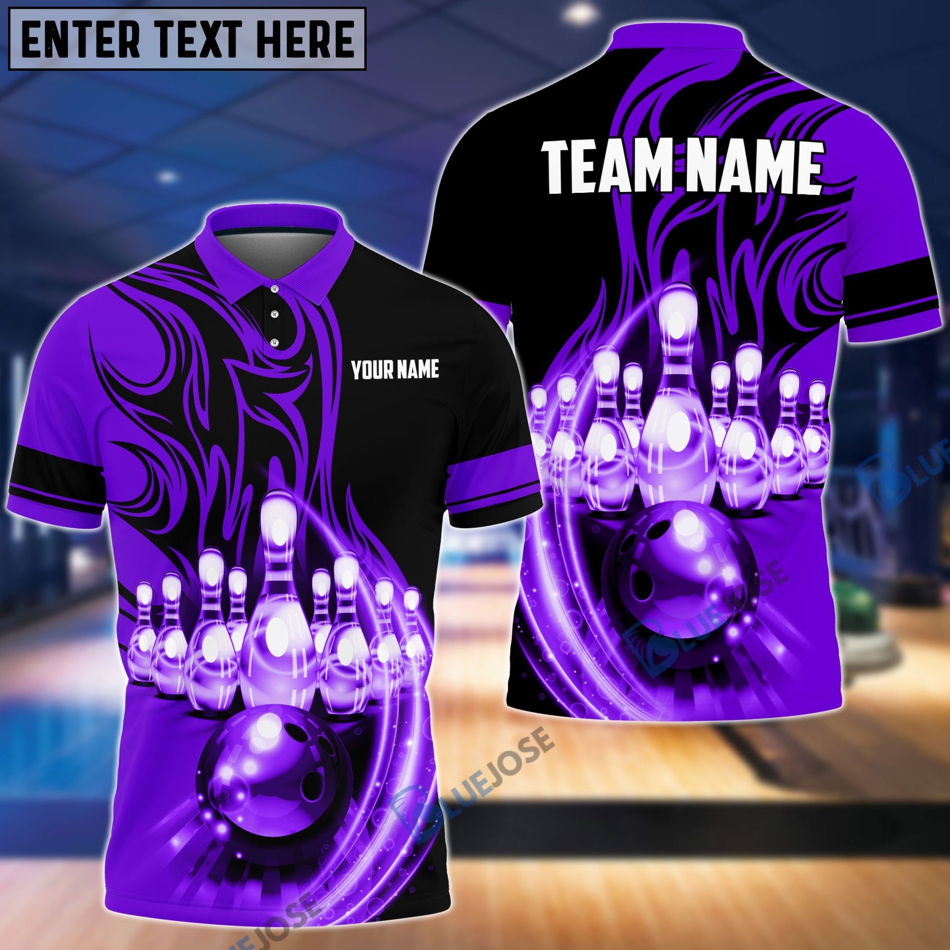 BlueJoses Flame Bowling Ball Break Pins Personalized Name and Team Name 3D Shirt (4 Colors)