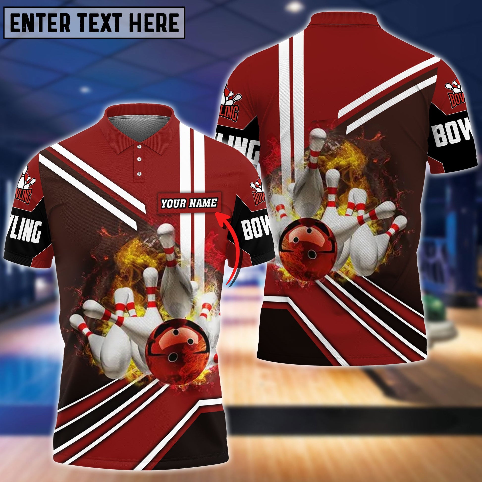 BlueJoses Red Bowling Ball On Fire Crashing Pins Personalized Name 3D Shirt