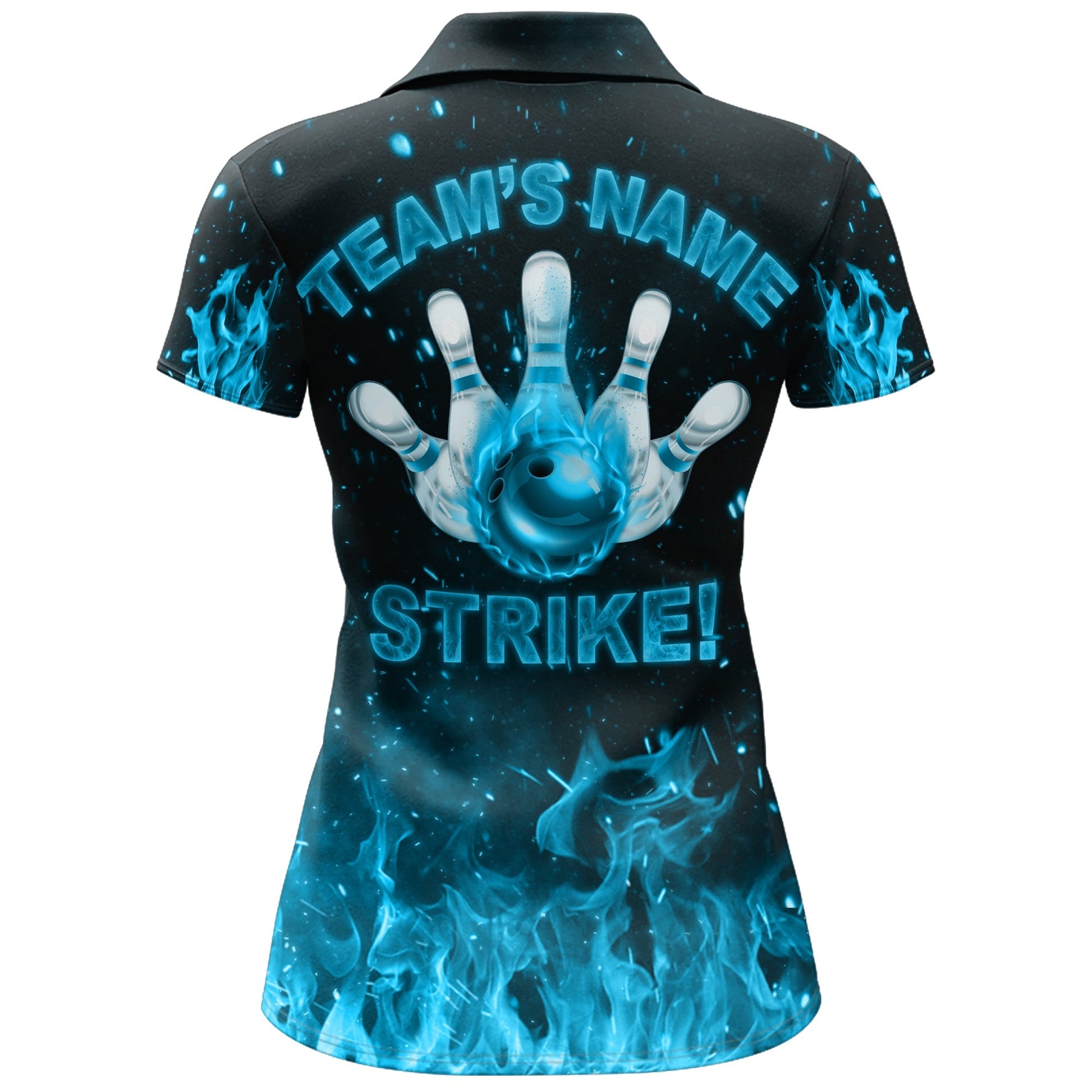 BlueJoses Strike Bowling Cyan Flames Personalized All Over Printed Shirt For Women