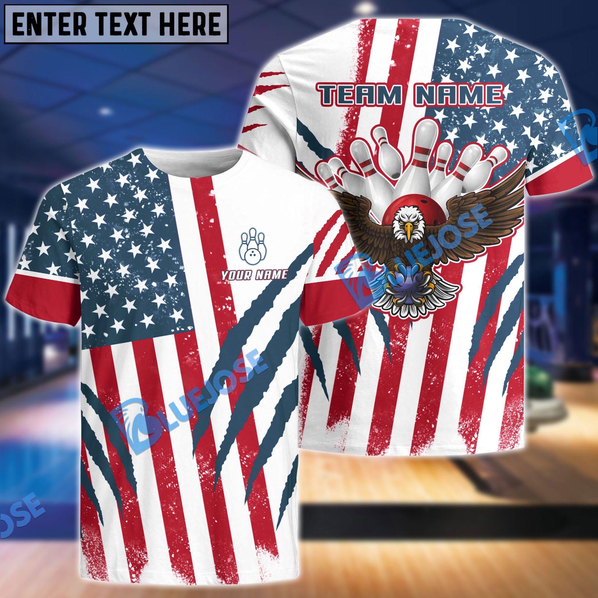 BlueJoses US Flag Eagle Bowling and Pins Customized Name, Team Name 3D Shirt