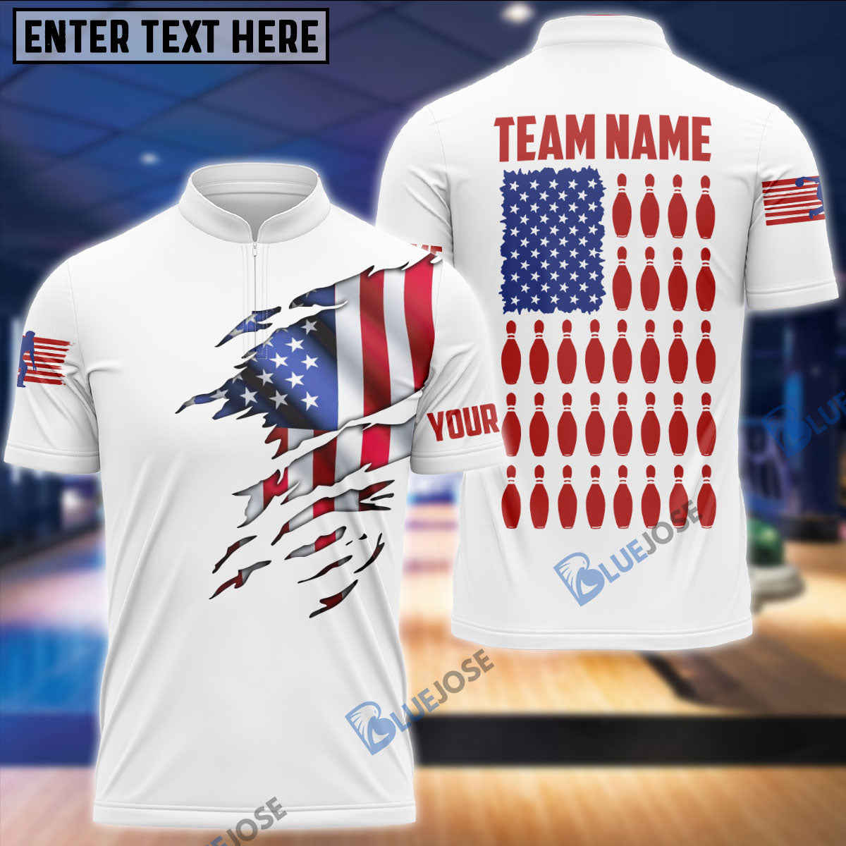 BlueJoses White American Flag Bowling Pins Customized Name, Team Name 3D Shirt