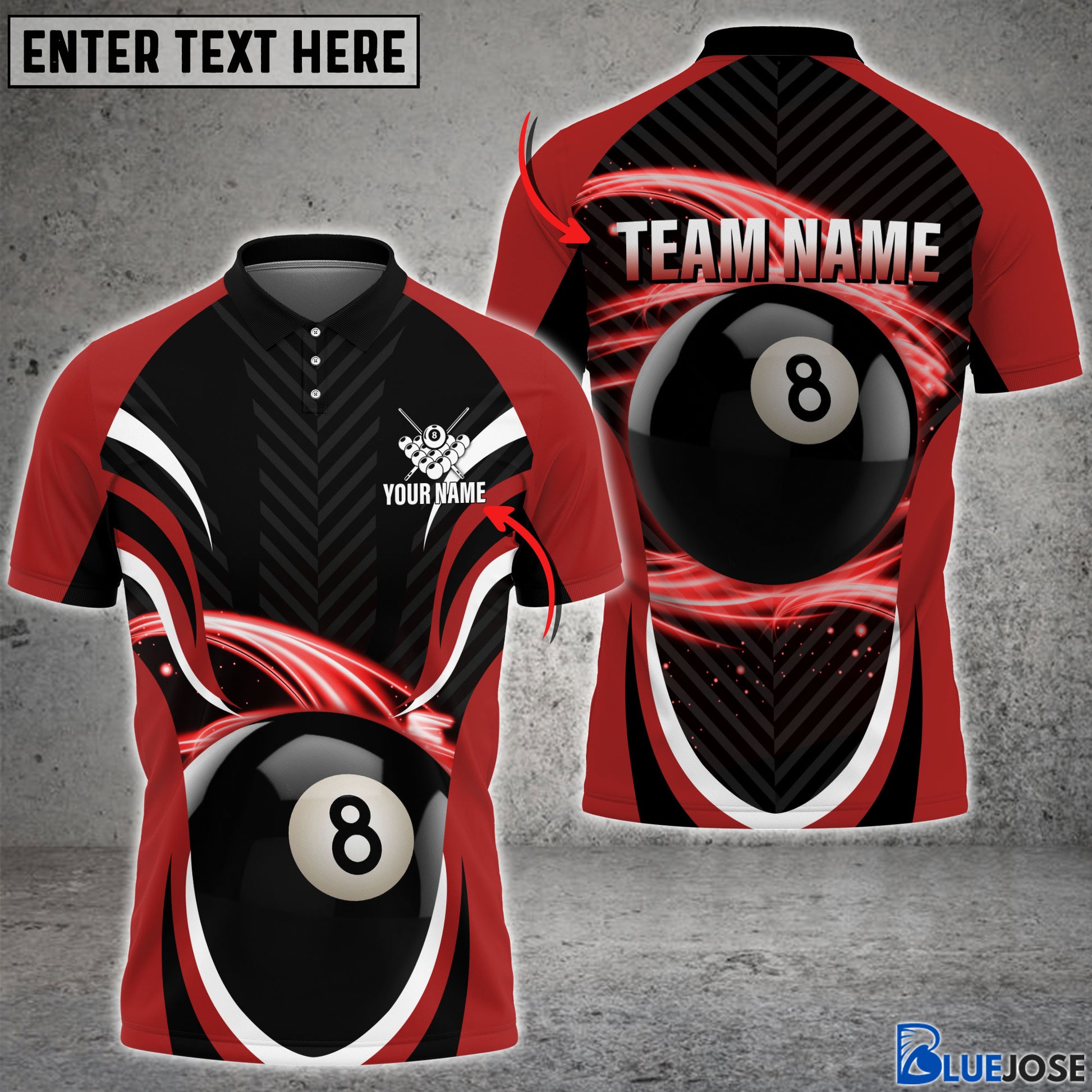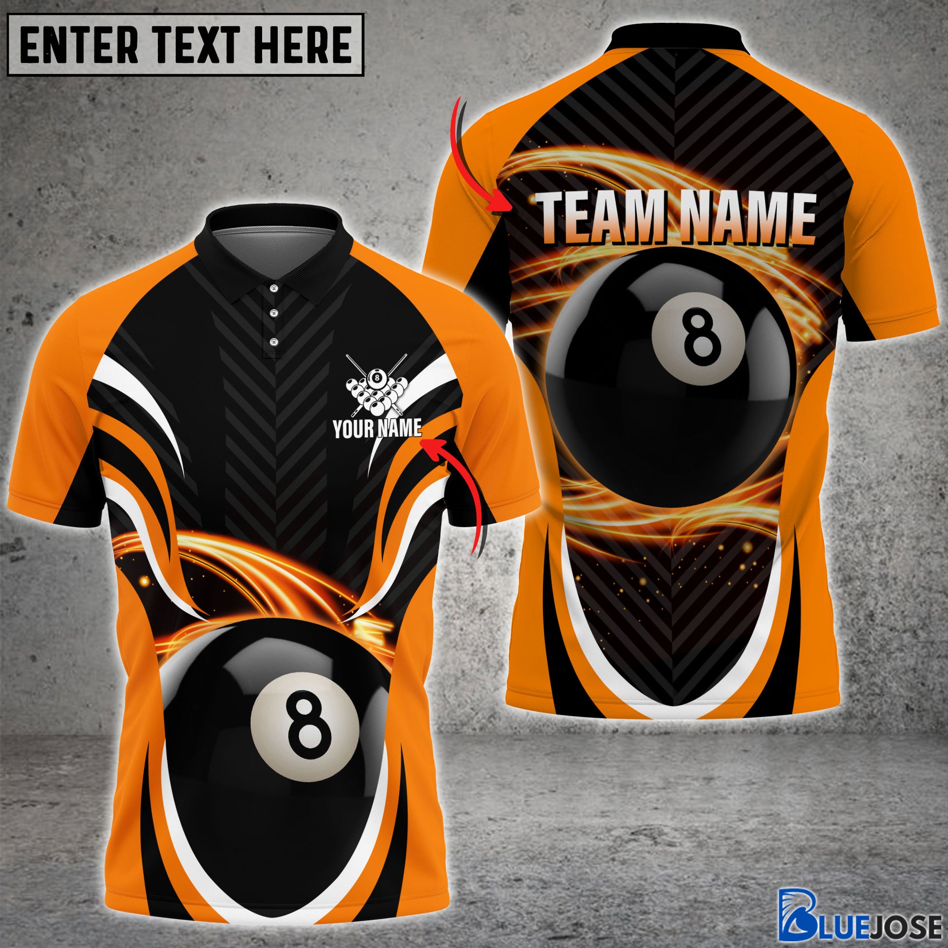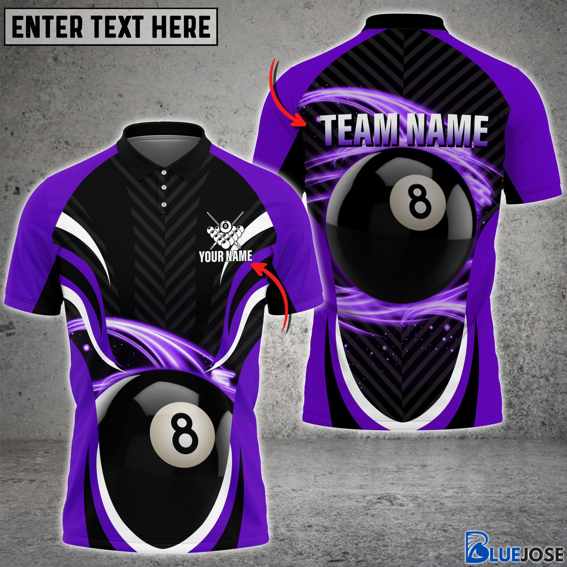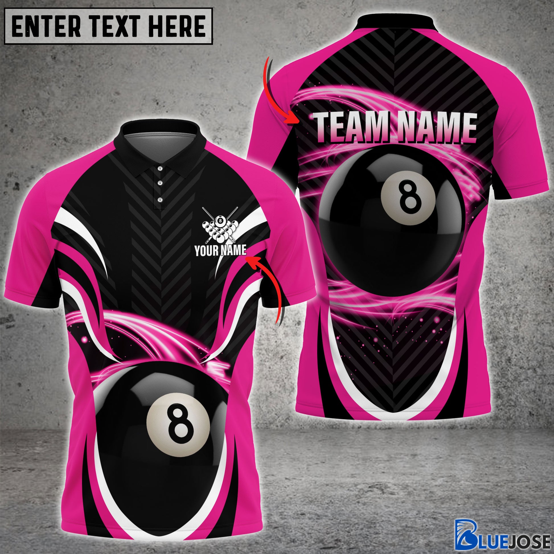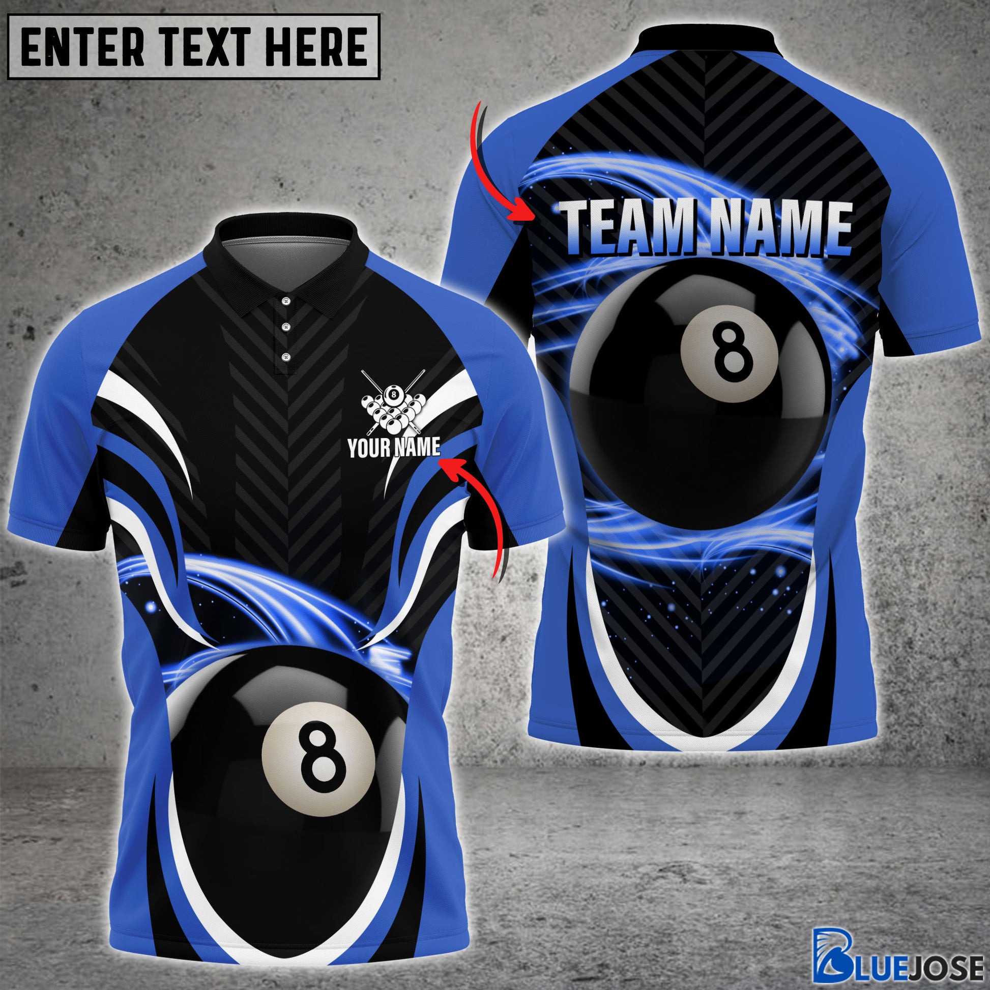BlueJose Billiard 8 Ball 7 Colors Personalized Name & Team Name Polo Shirt