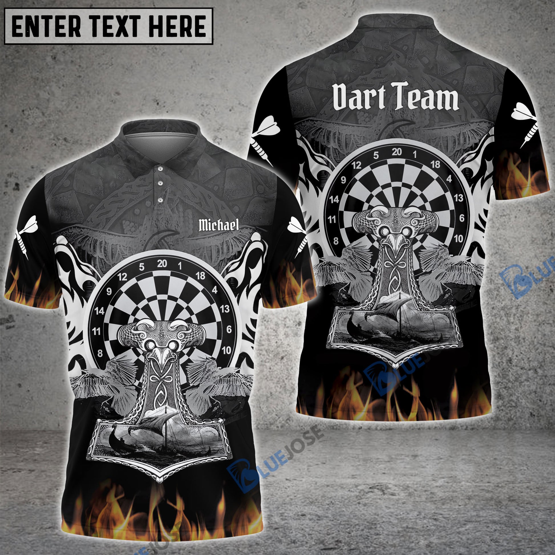 BlueJose Viking Ship Fire Flame Custom Darts Shirts