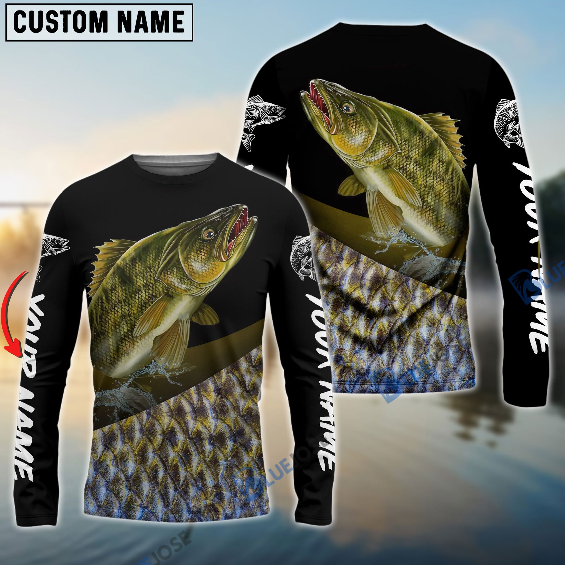 Bluejose Custom Walleye Fishing Jerseys, Personalized Walleye Fishing Scales Fishing Long Sleeve Shirts