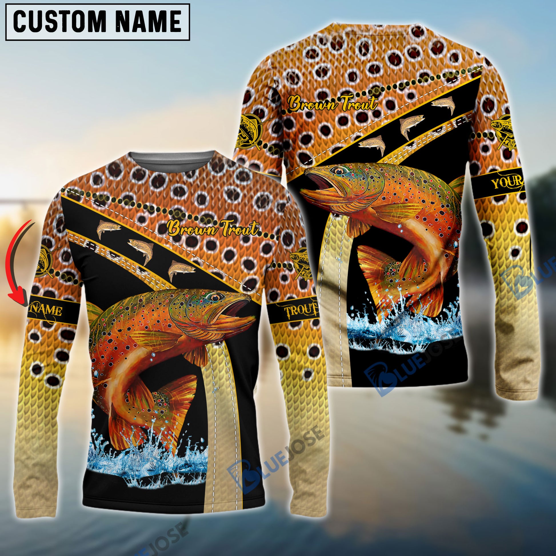 Bluejose Personalized Brown Trout Fishing Custom Name Brown 3D Shirts