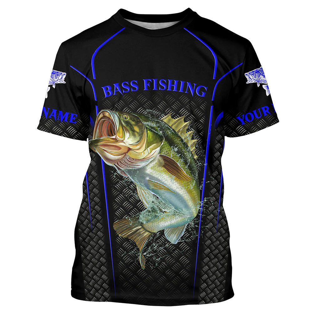 BlueJose Blue Black Bass Fishing Custom Name Shirt