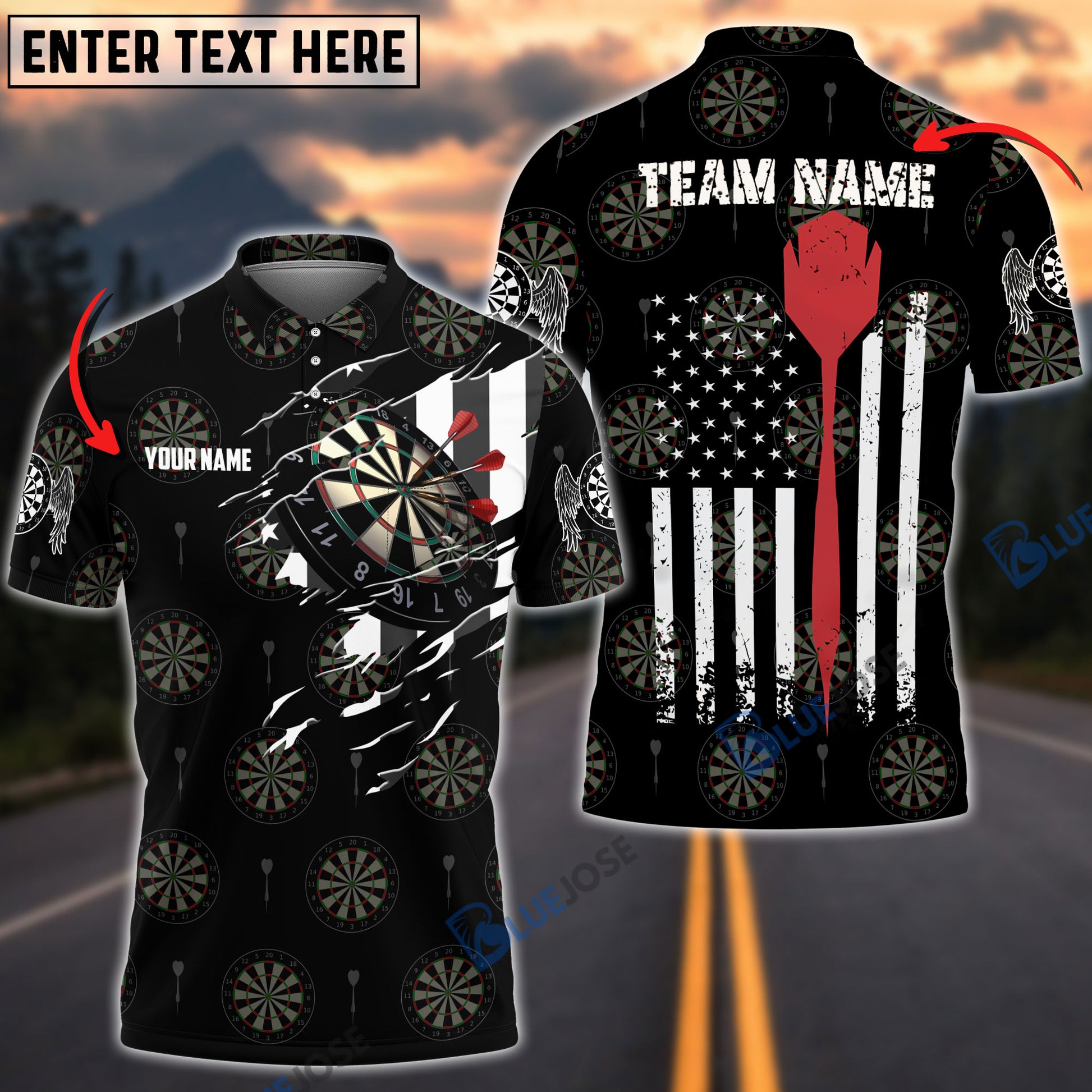 BlueJose American Athlete Red Custom Darts Shirts