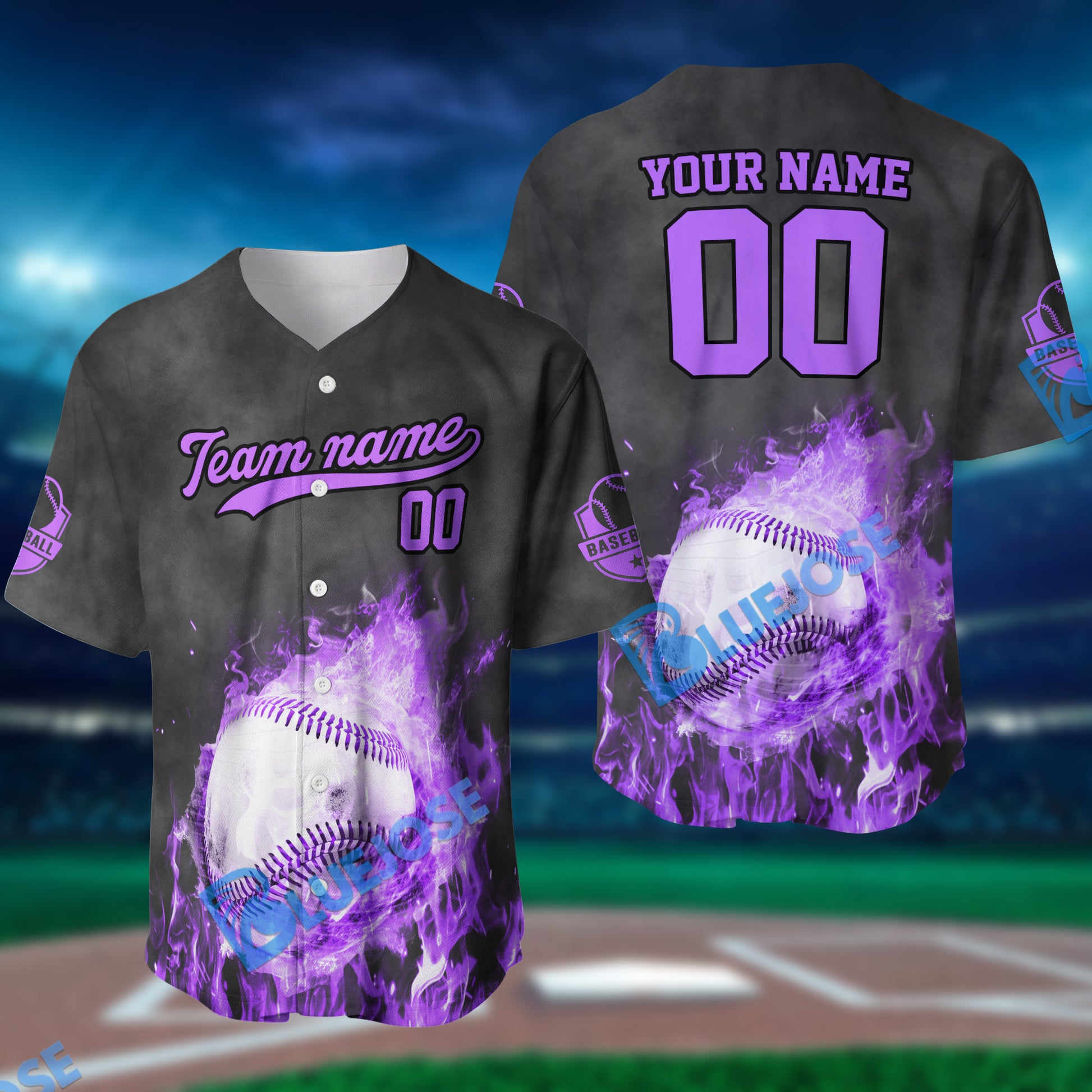BlueJose Fireball Baseball Pattern Multicolor Option Customized Name, Team Name 3D Baseball Jersey (4 Colors)