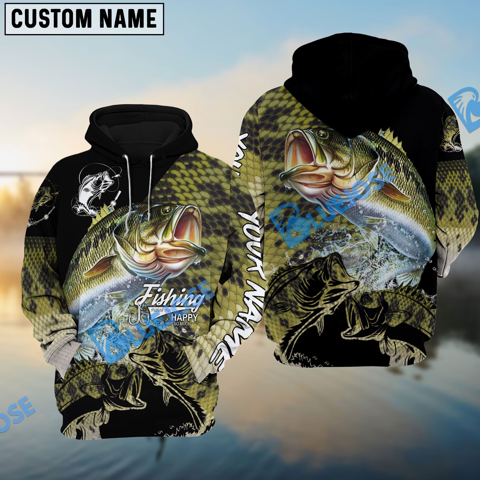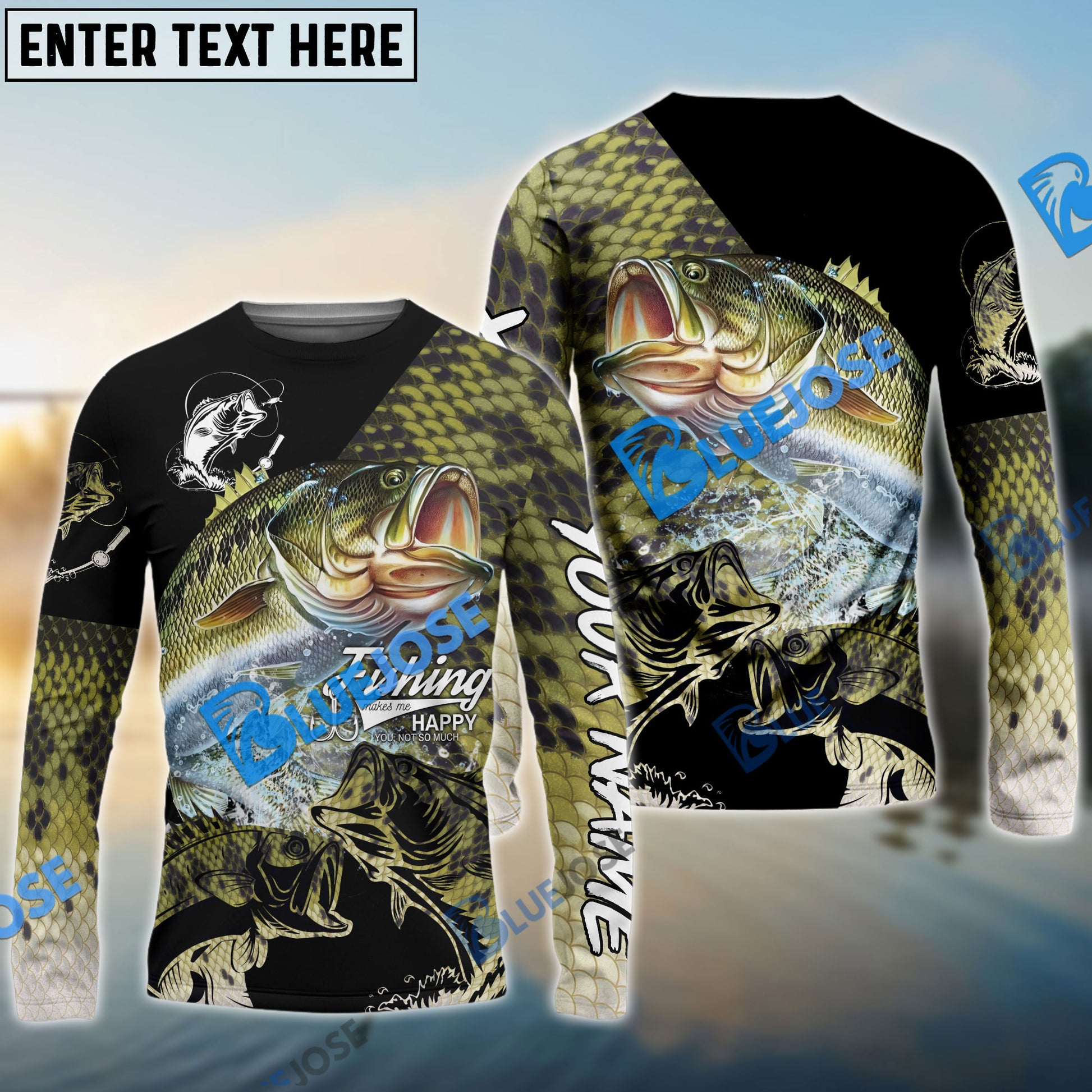 Bluejose Bass Fishing Skin Pattern Performance Fishing Custom Name Long Sleeves