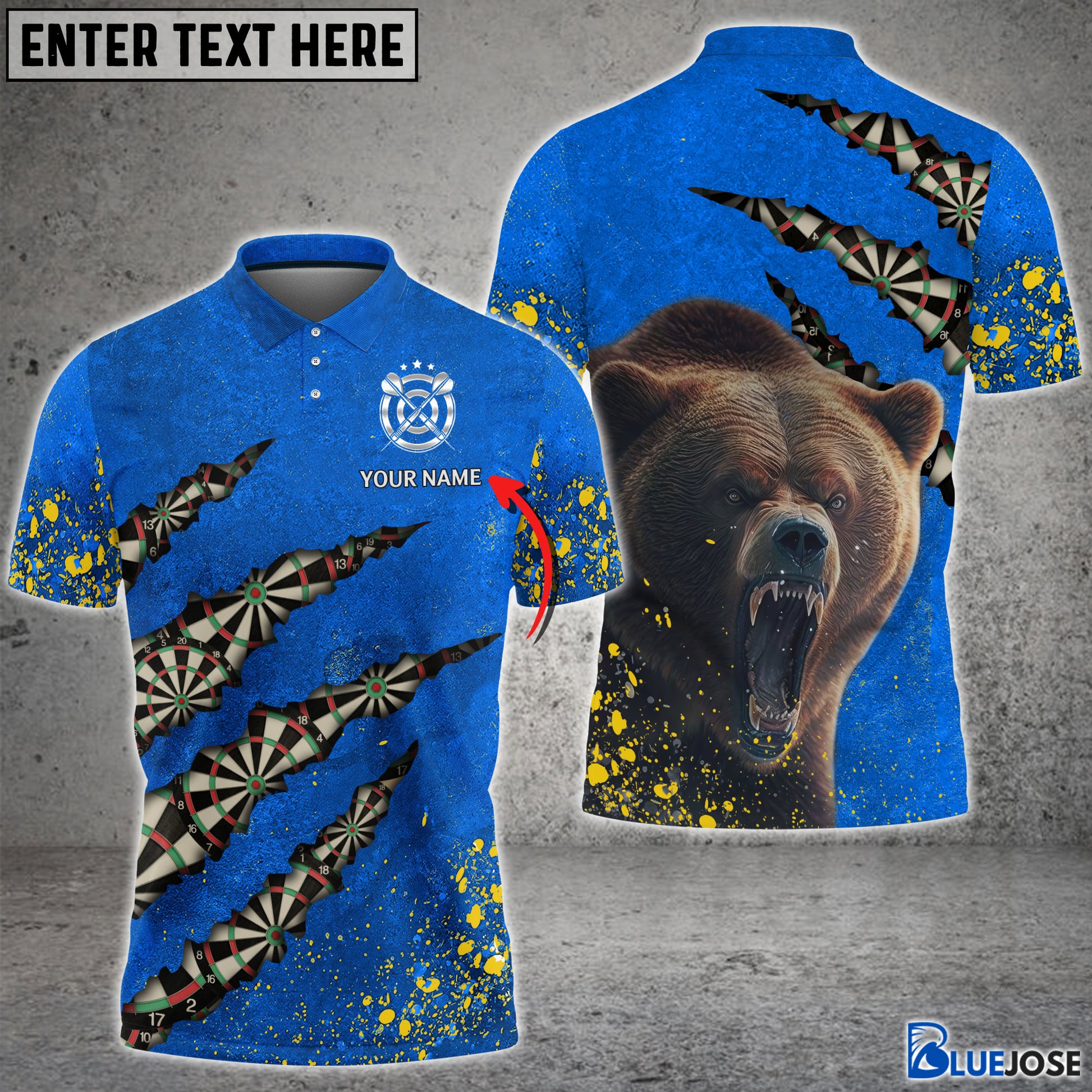 BlueJose Bear And Darts Blue and Yellow Personalized Name 3D Shirt