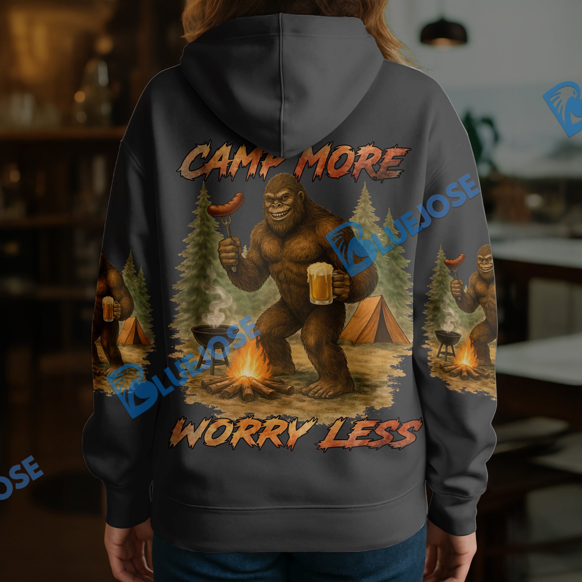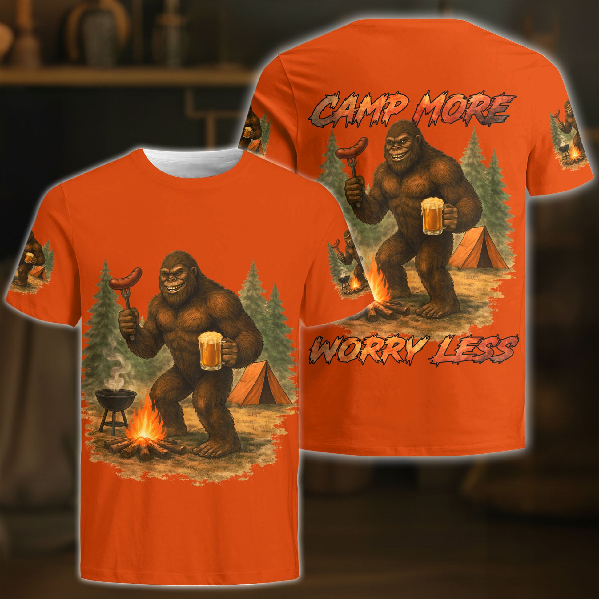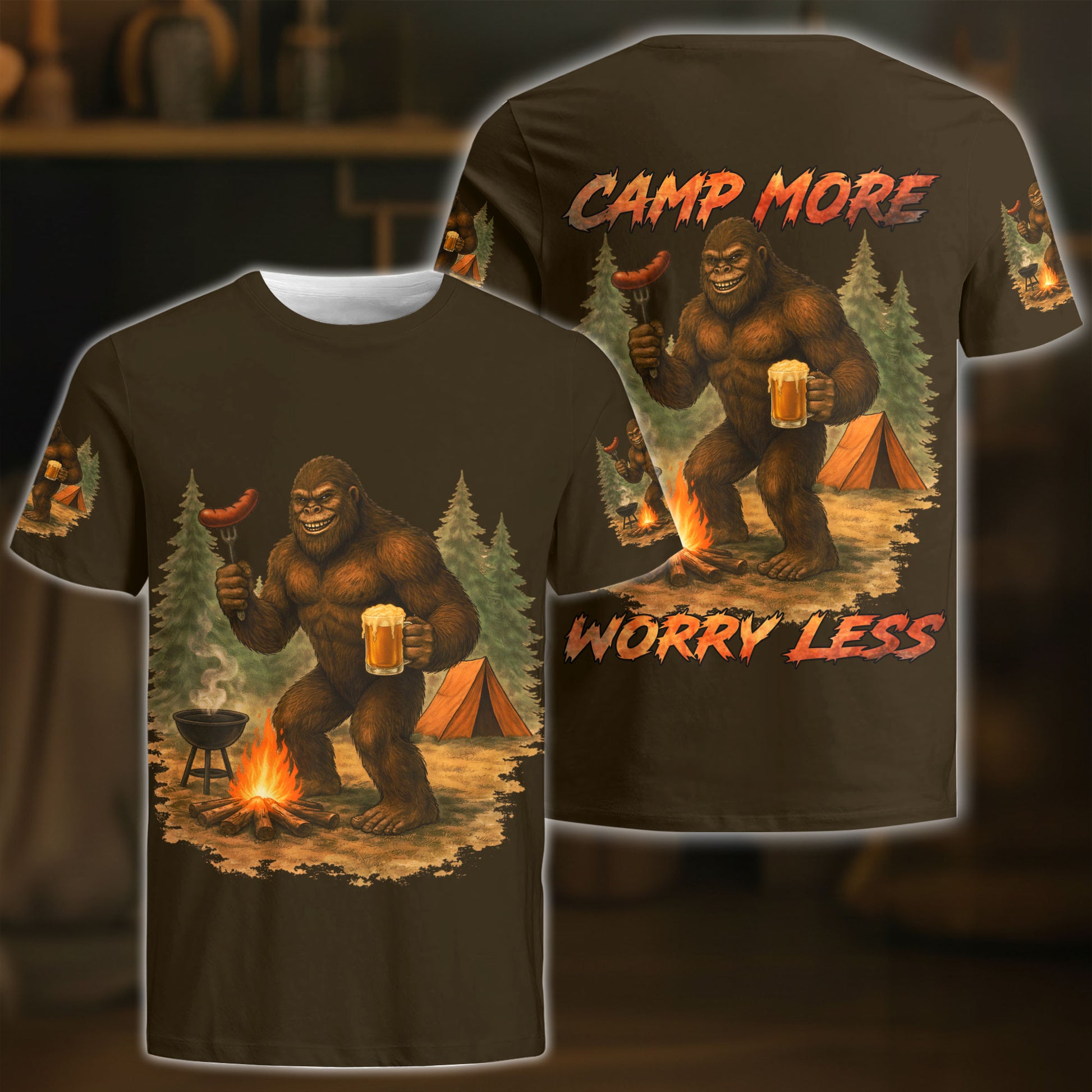 BlueJose Bigfoot Camping Camp More, Worry Less 3D Shirts