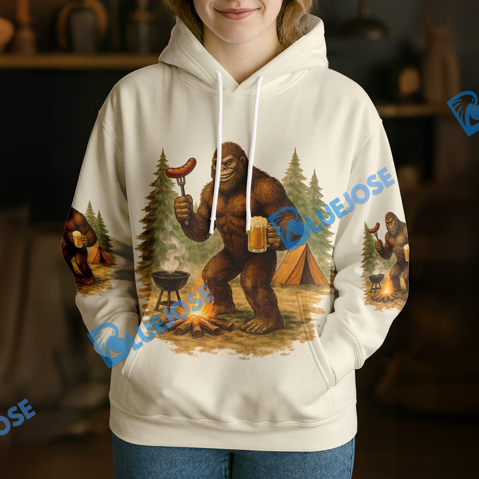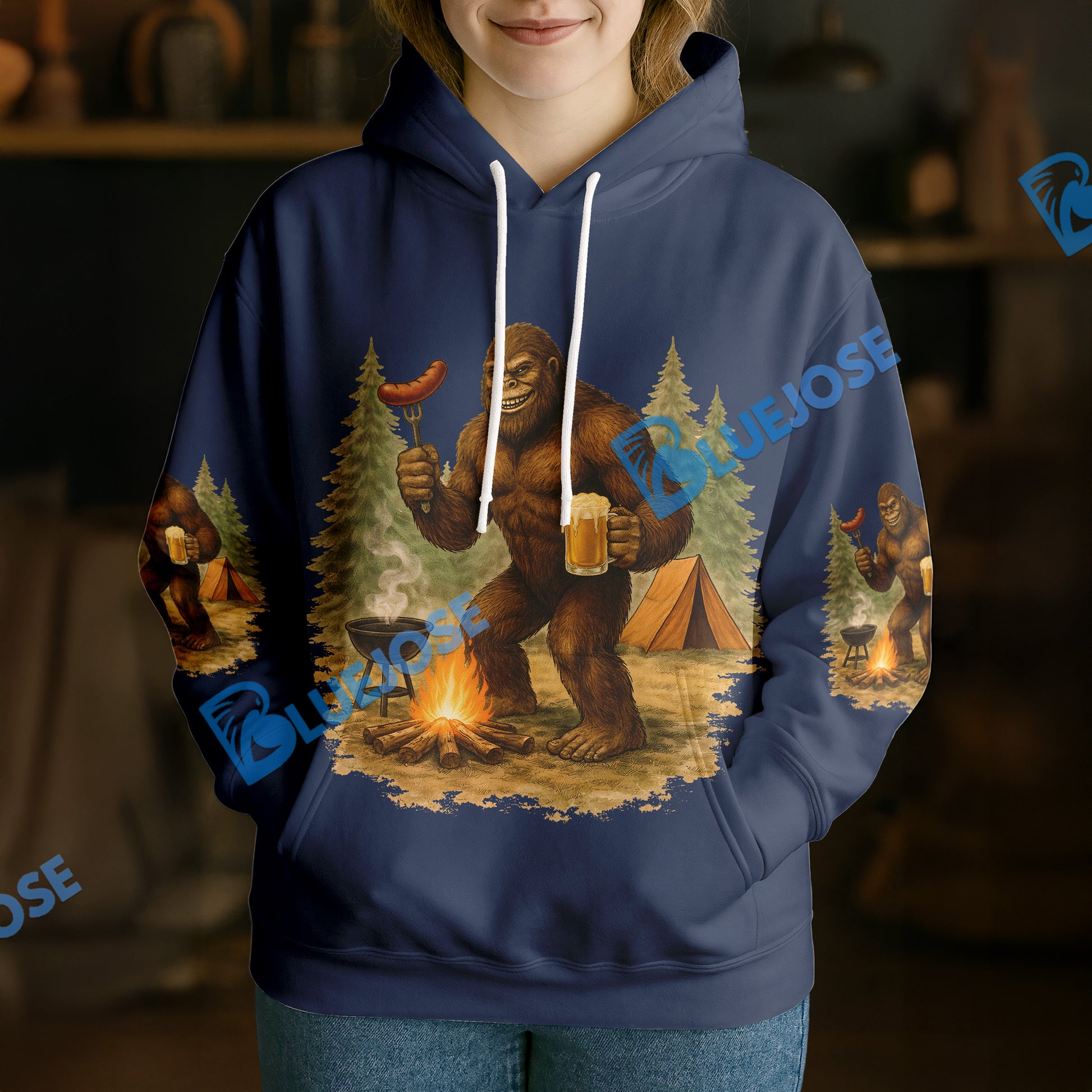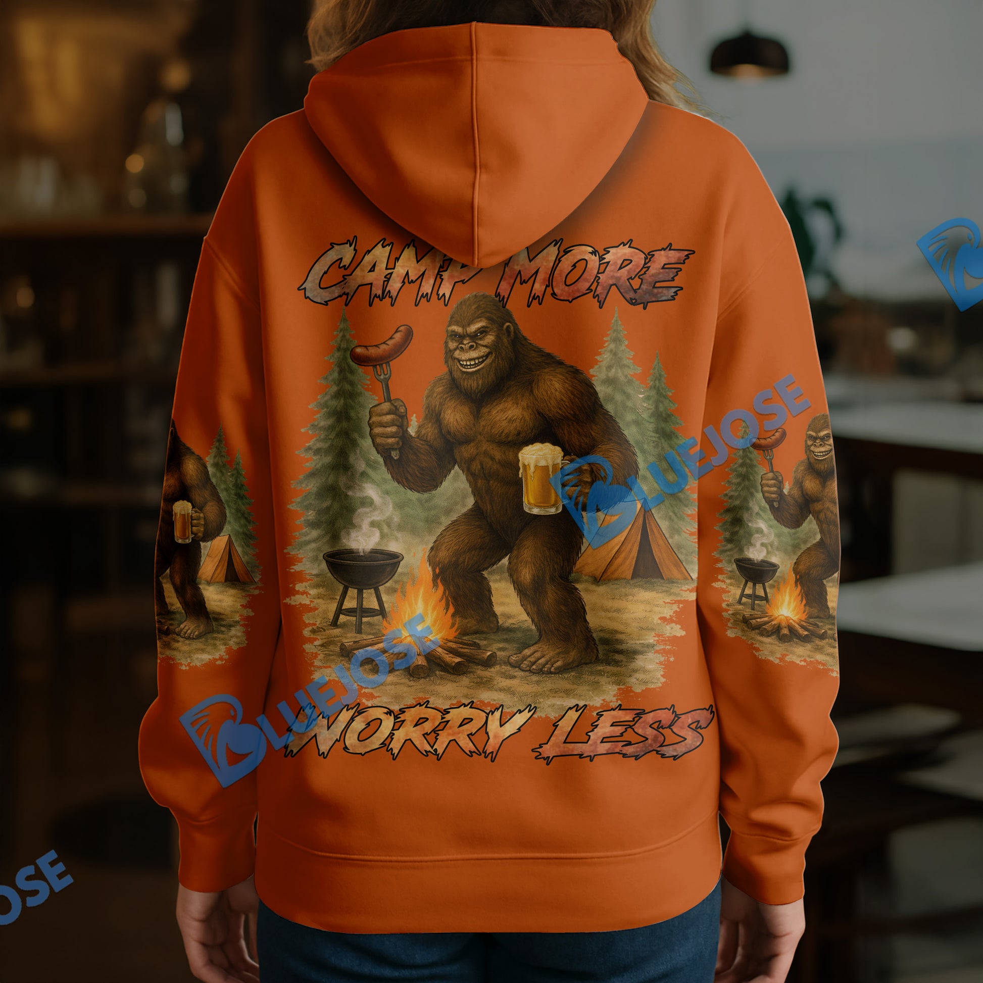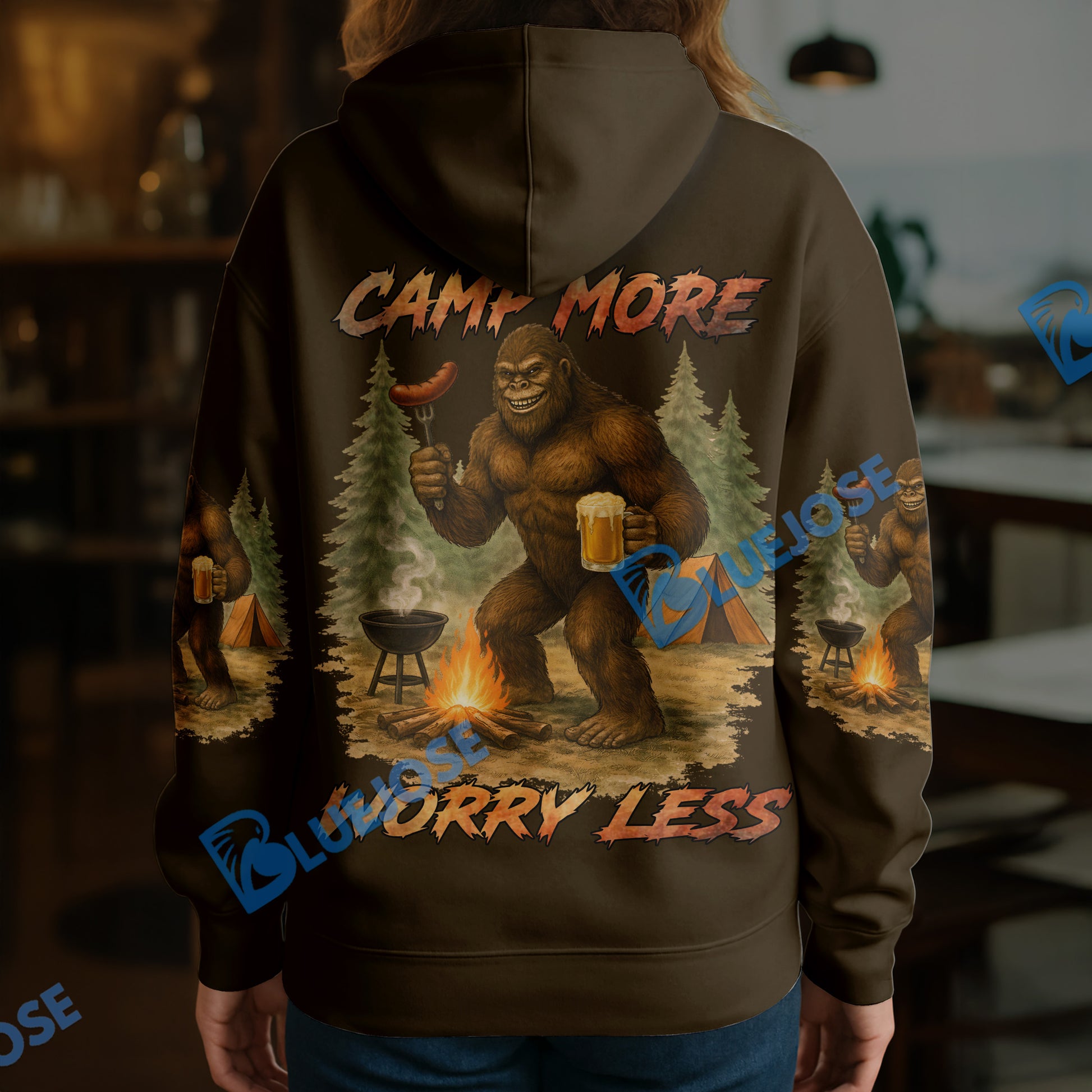 BlueJose Bigfoot Camping Camp More, Worry Less 3D Shirts