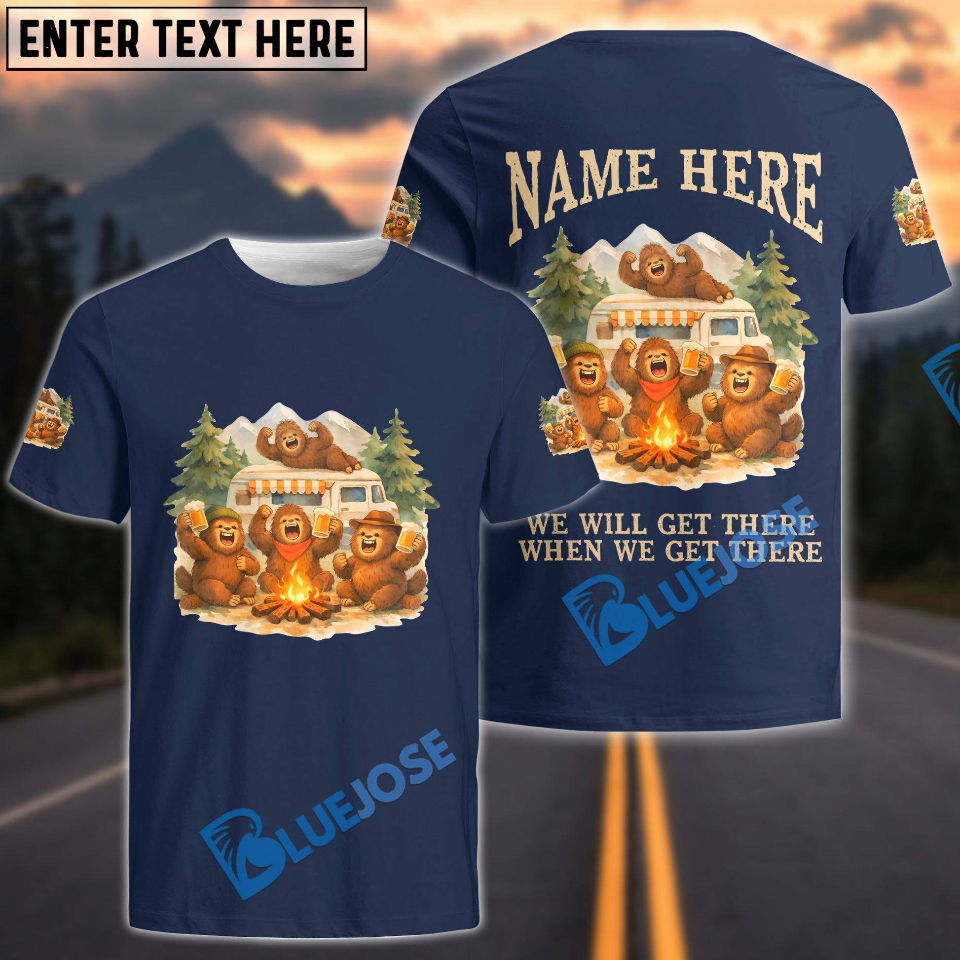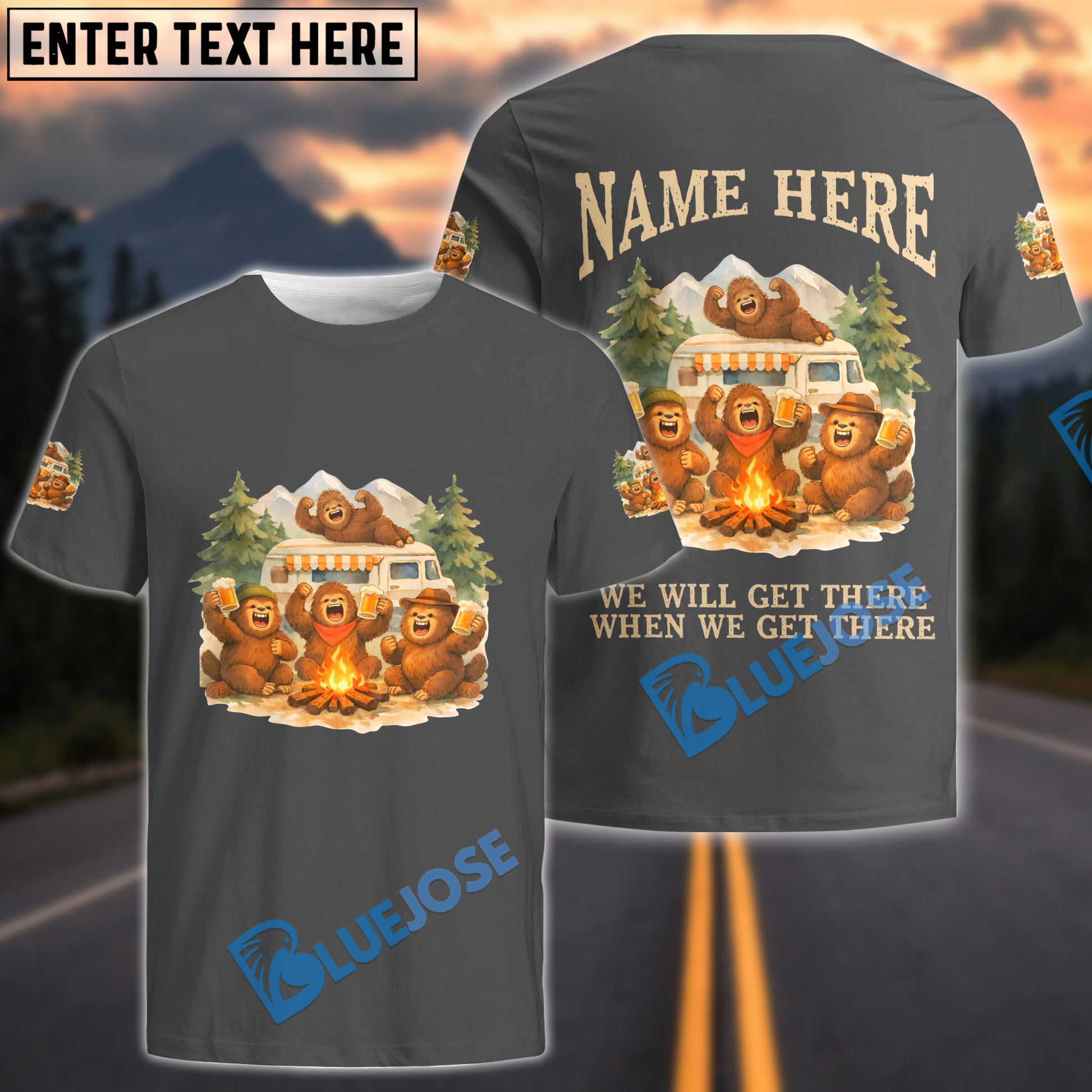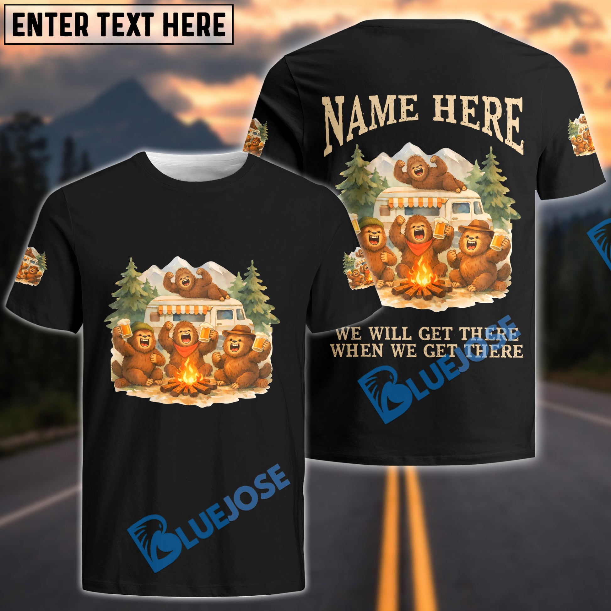 BlueJose Bigfoot Camping We Will Get There When We Get There Personalized Name Shirts