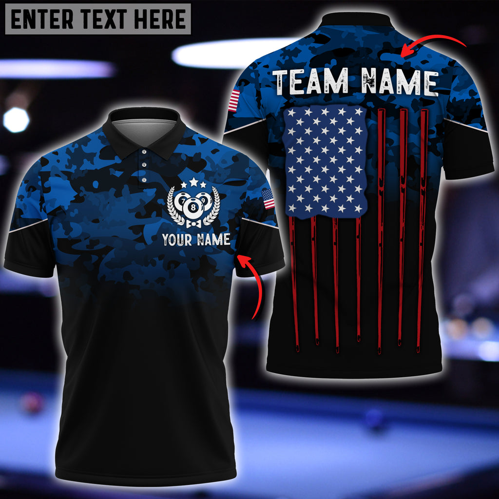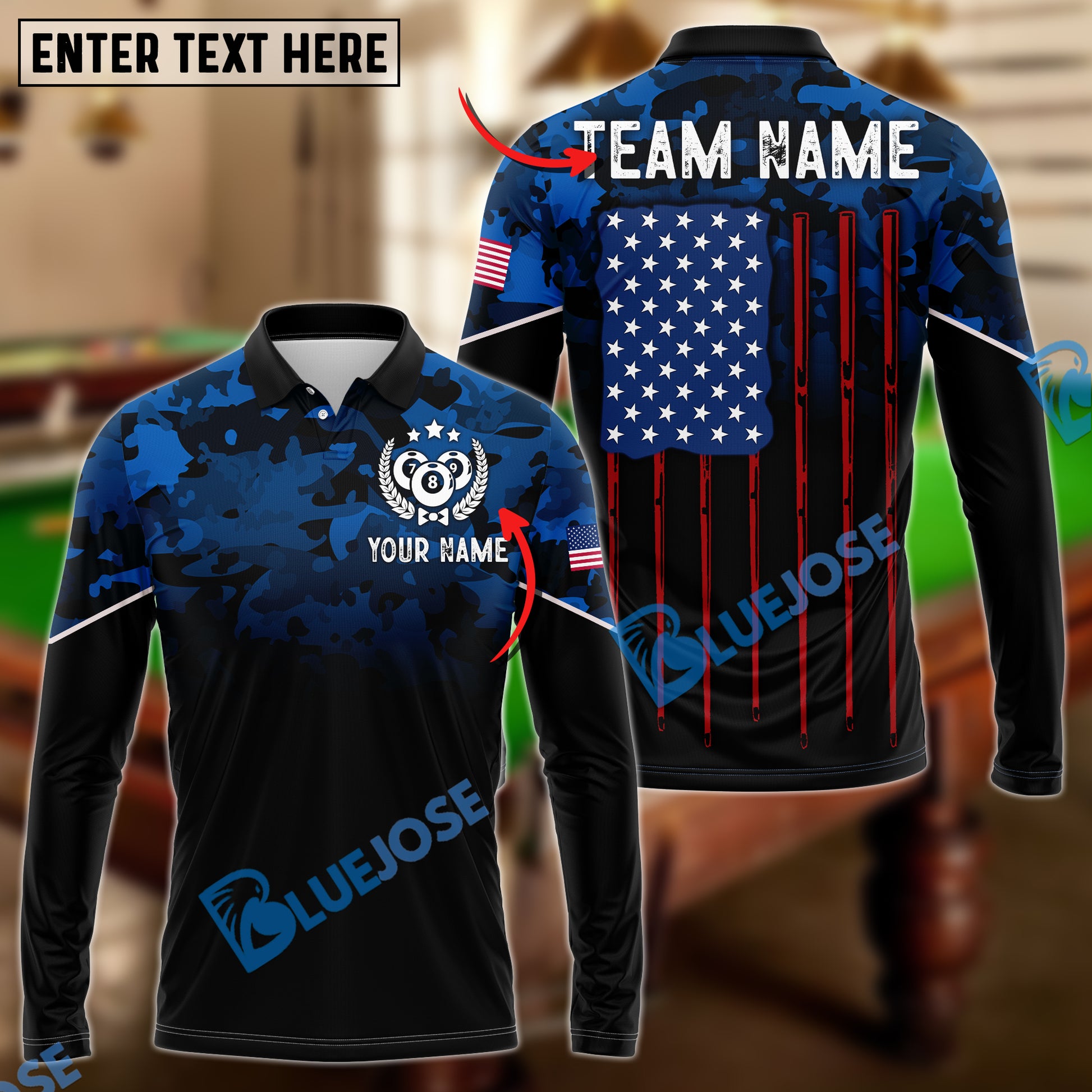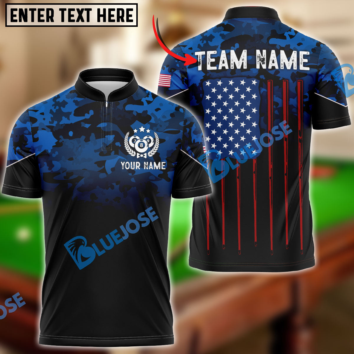 BlueJose Billiard Navy US Flag Pattern Personalized Name, Team Name Unisex Shirt