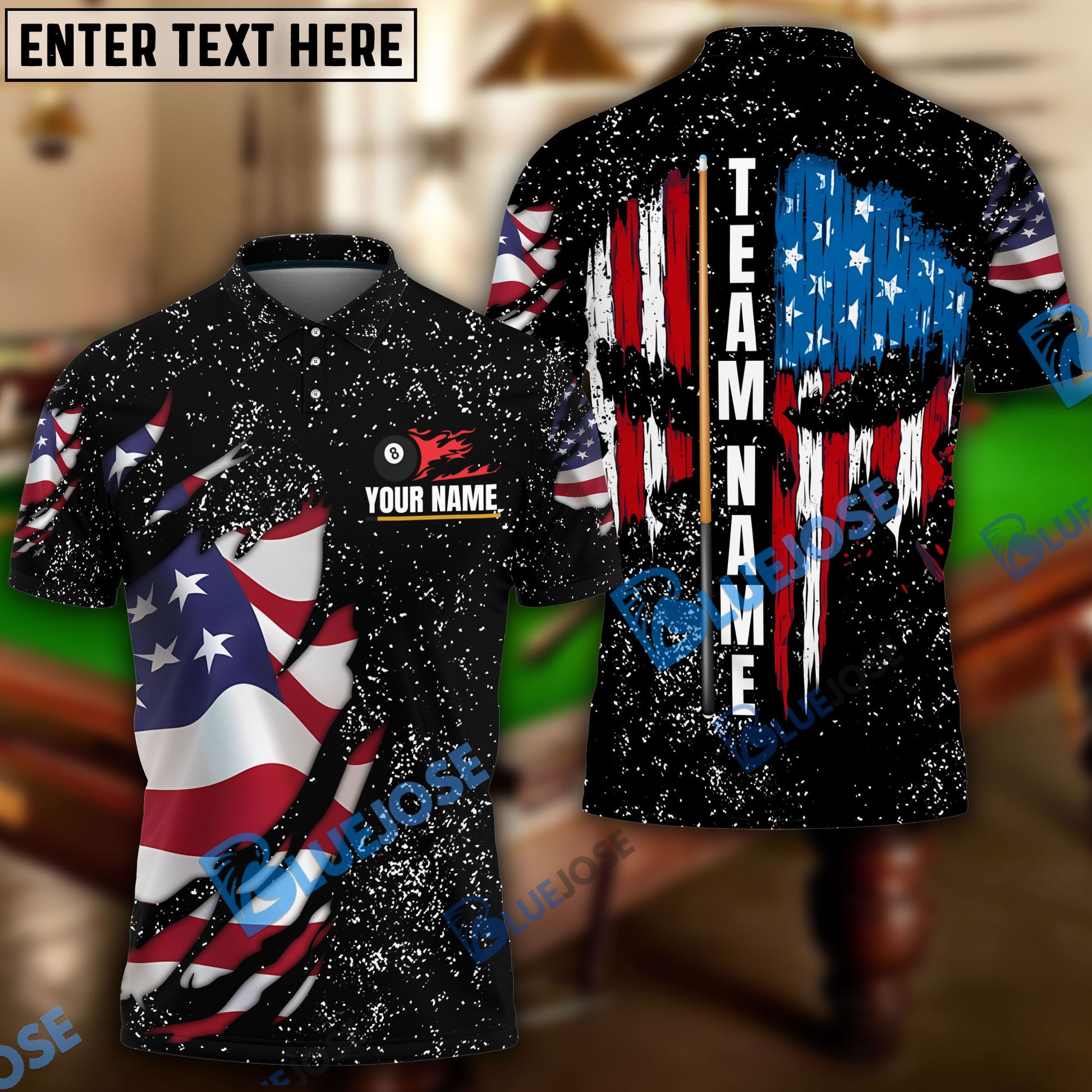 BlueJose Billiard Ball 8 Punishing Skull Personalized Name, Team Name Unisex Shirt