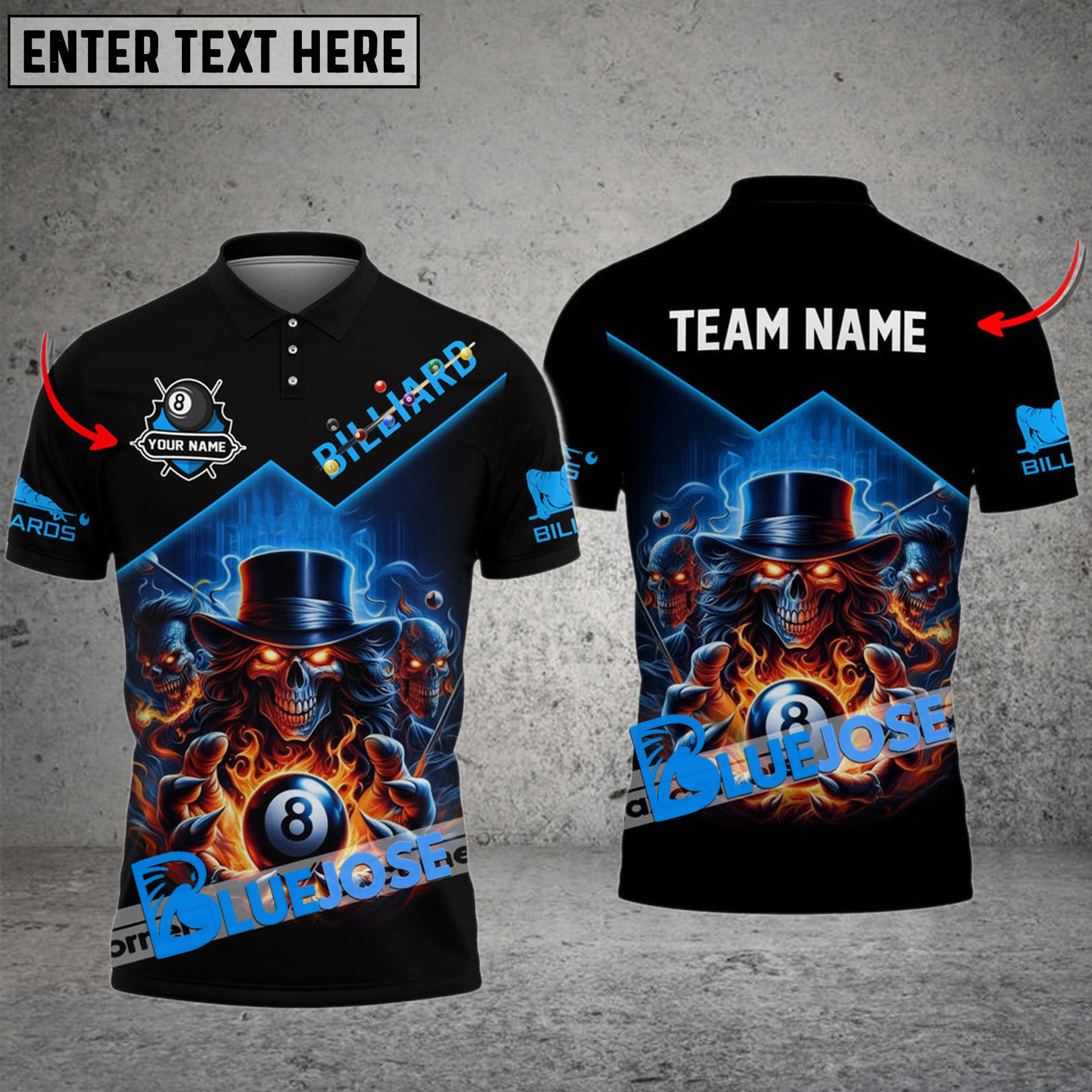 BlueJose Billiards 8 Ball Hands Of Skull Flame Personalized Name, Team Name Unisex Shirt ( 4 Colors )