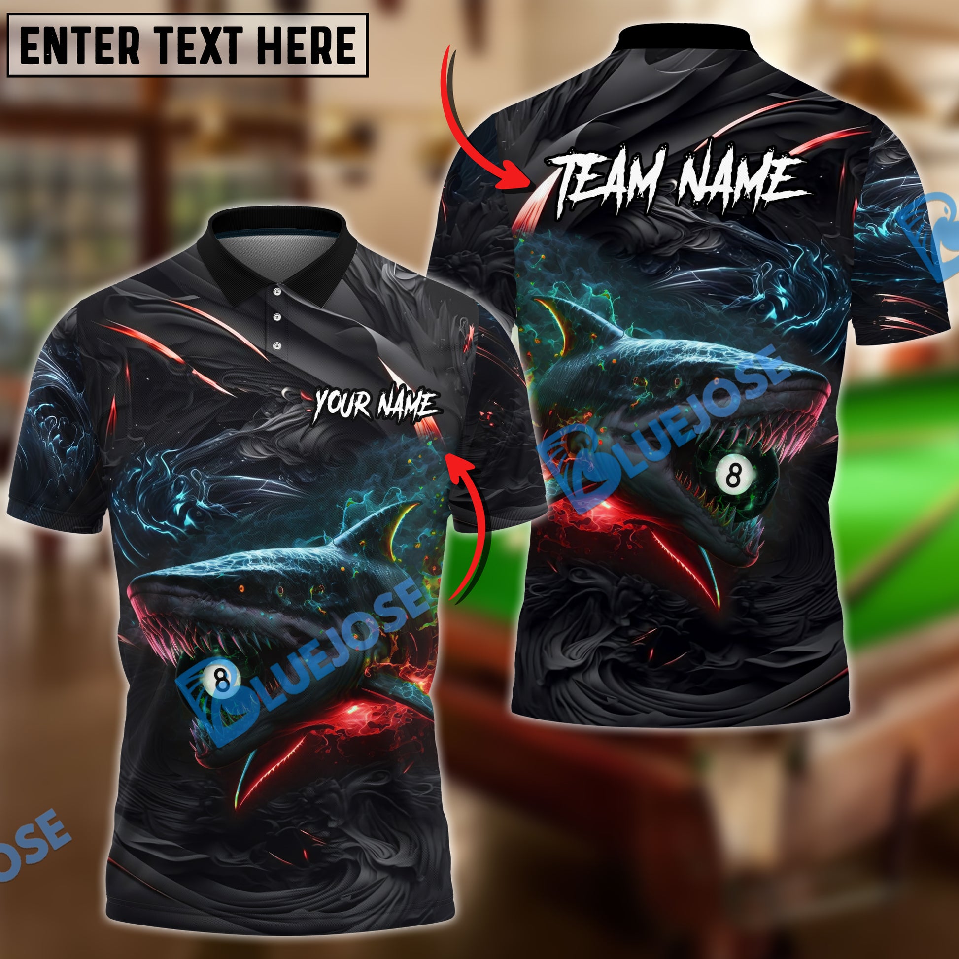 BlueJose Billiards 8 Ball Hell Flame Shark Personalized Name, Team Name Unisex Shirt ( 4 Colors )