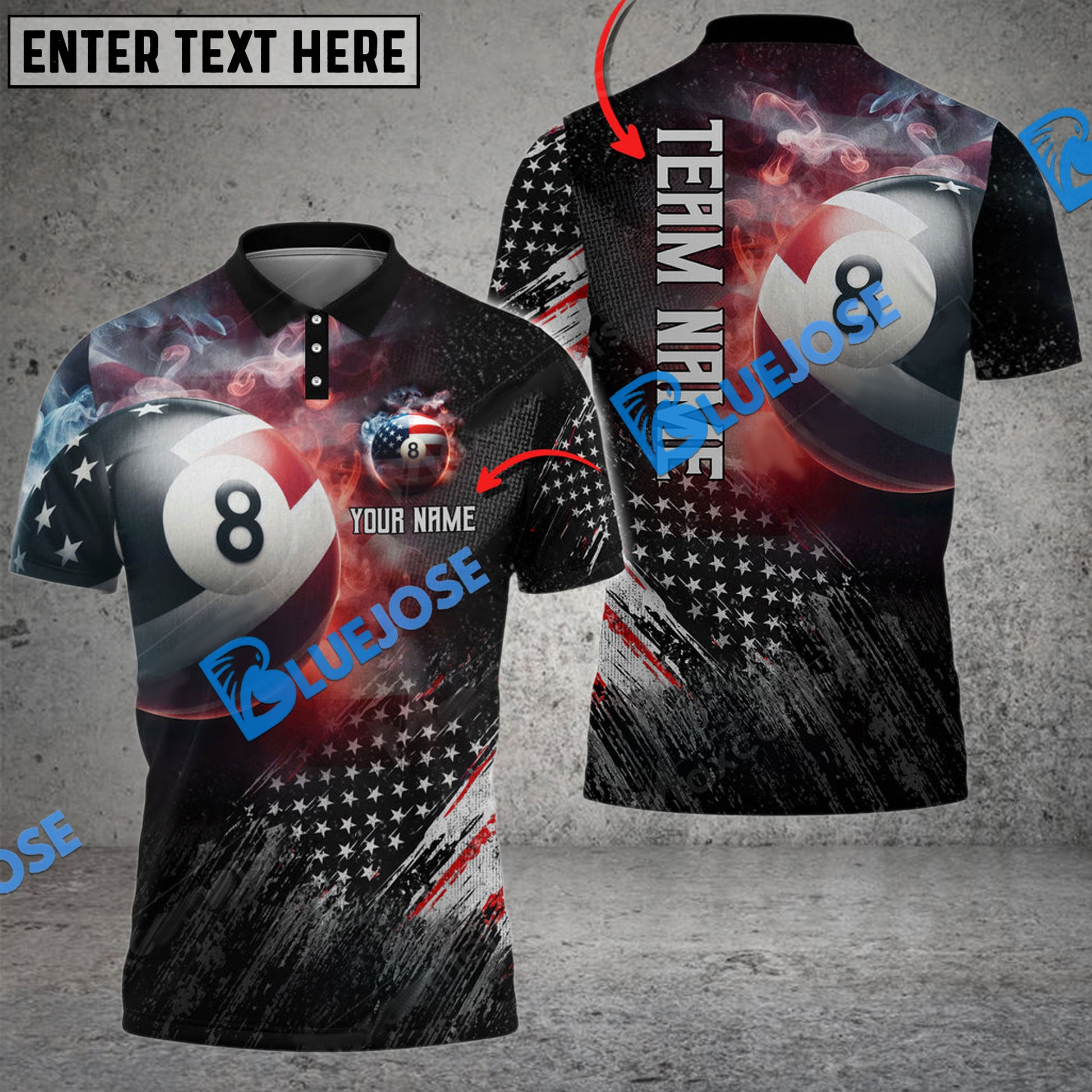 BlueJose Billiards 8 Ball Smoke US Flag Personalized Name, Team Name Unisex Shirt