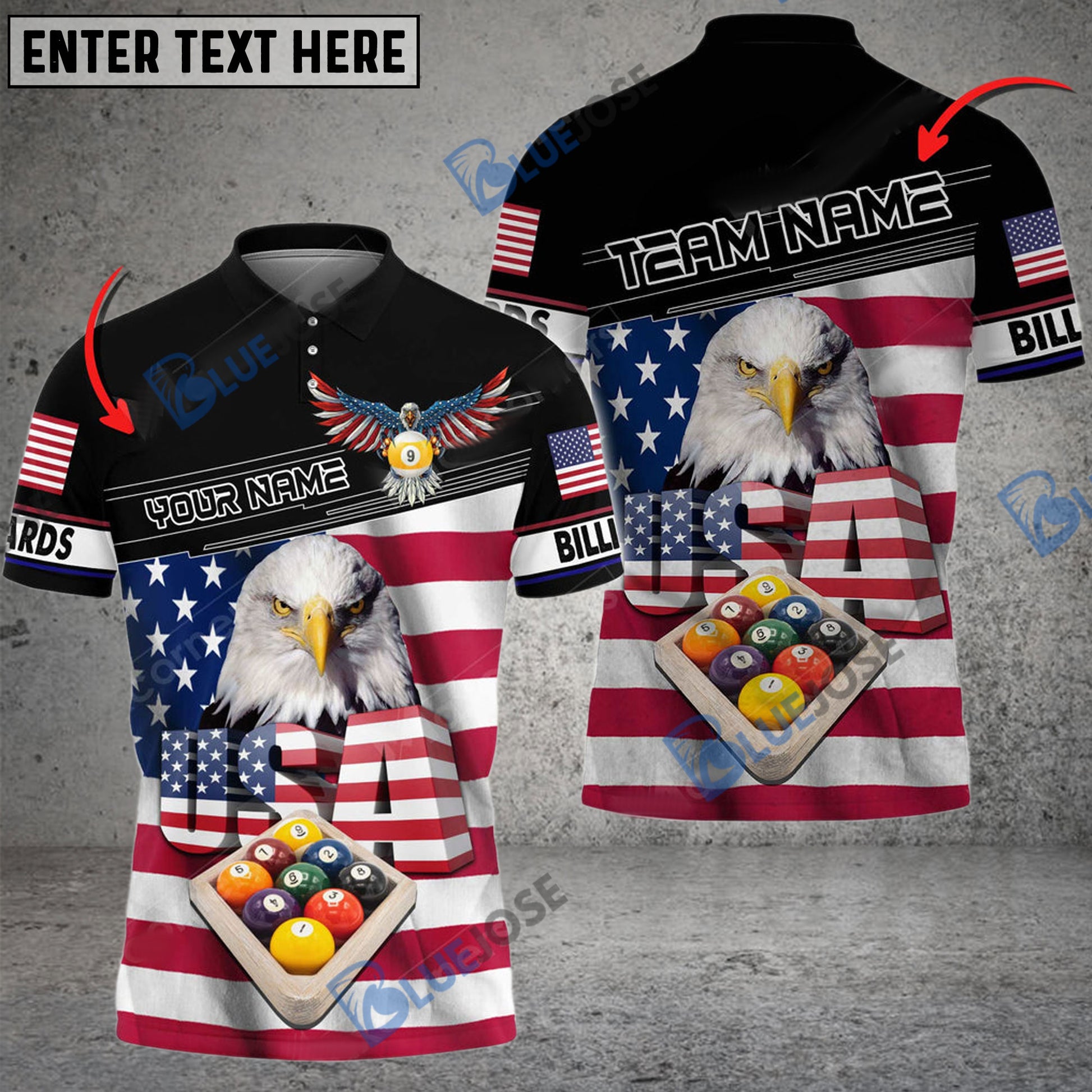 BlueJose Billiards 9 Ball Rack USA Eagle Personalized Name, Team Name Shirt