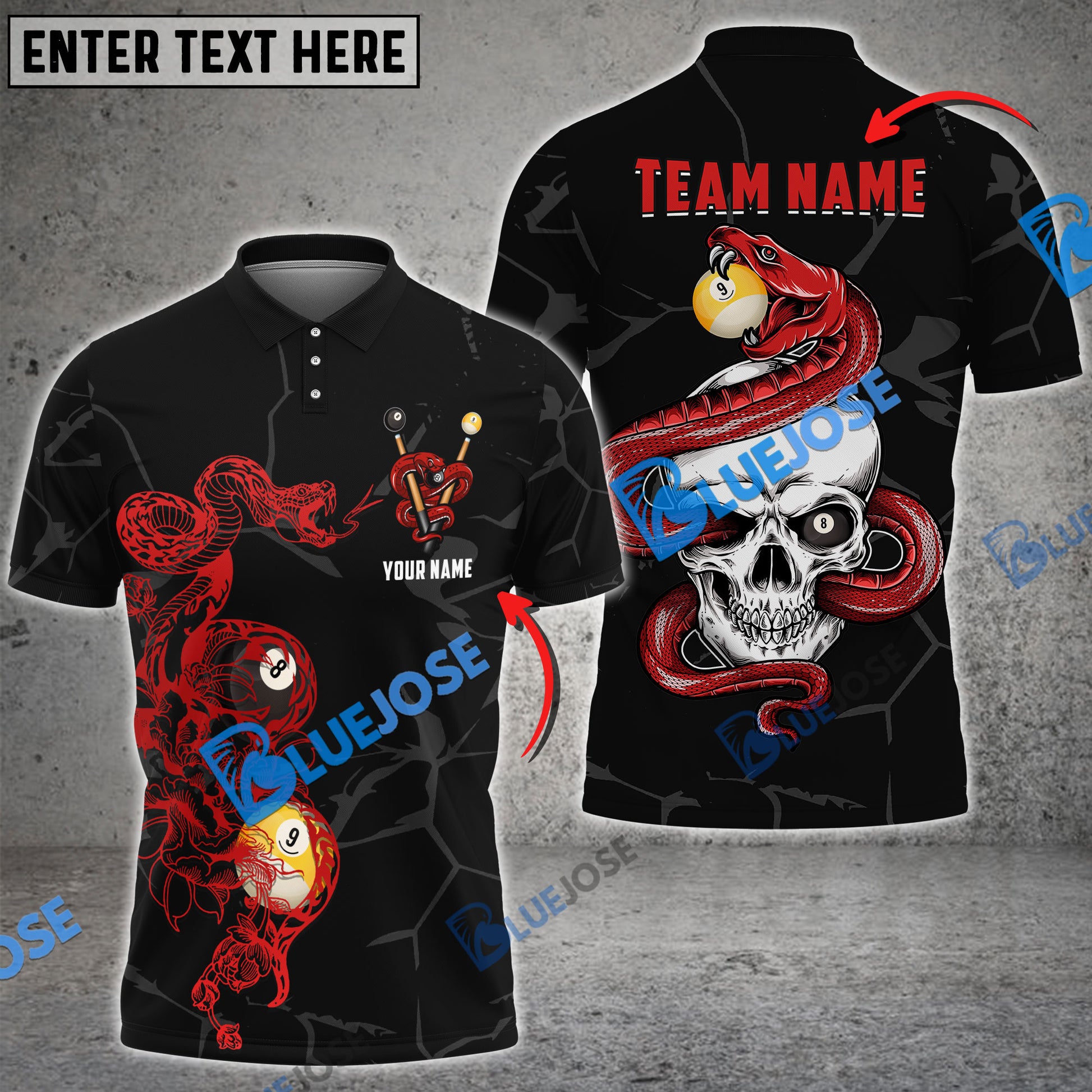 BlueJose Billiards Ball 8 And 9 Snake Skull Personalized Name, Team Name Unisex Shirt ( 4 Colors )
