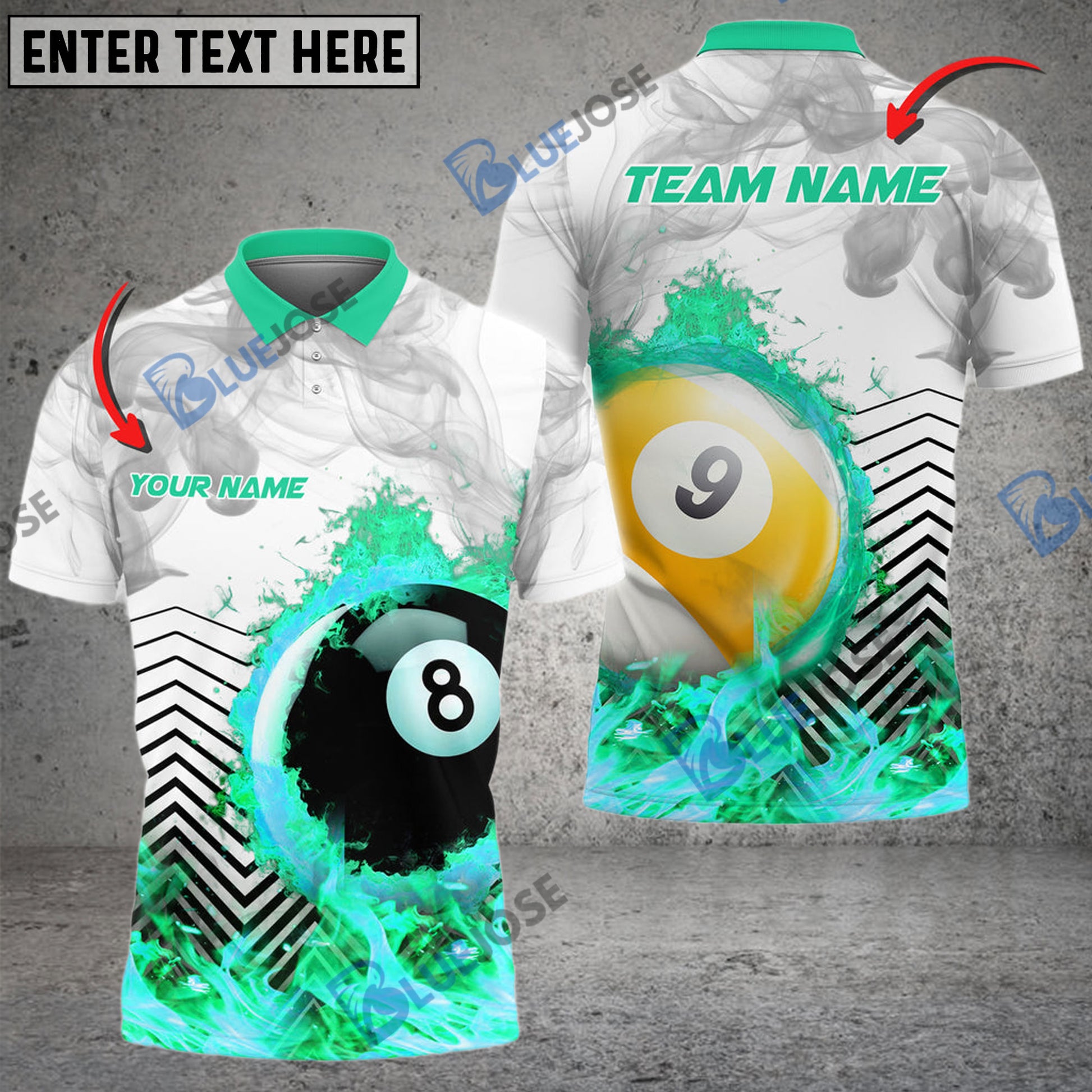 BlueJose Billiards Ball 8 And 9 White Fire Flame Smoke Personalized Name, Team Name Unisex Shirt ( 4 Colors )