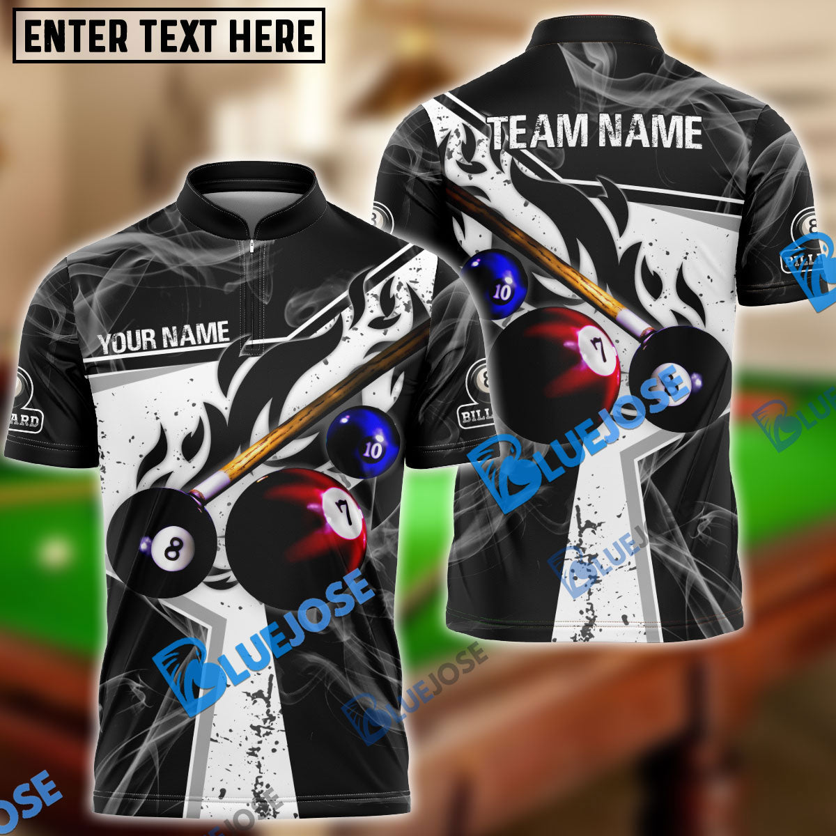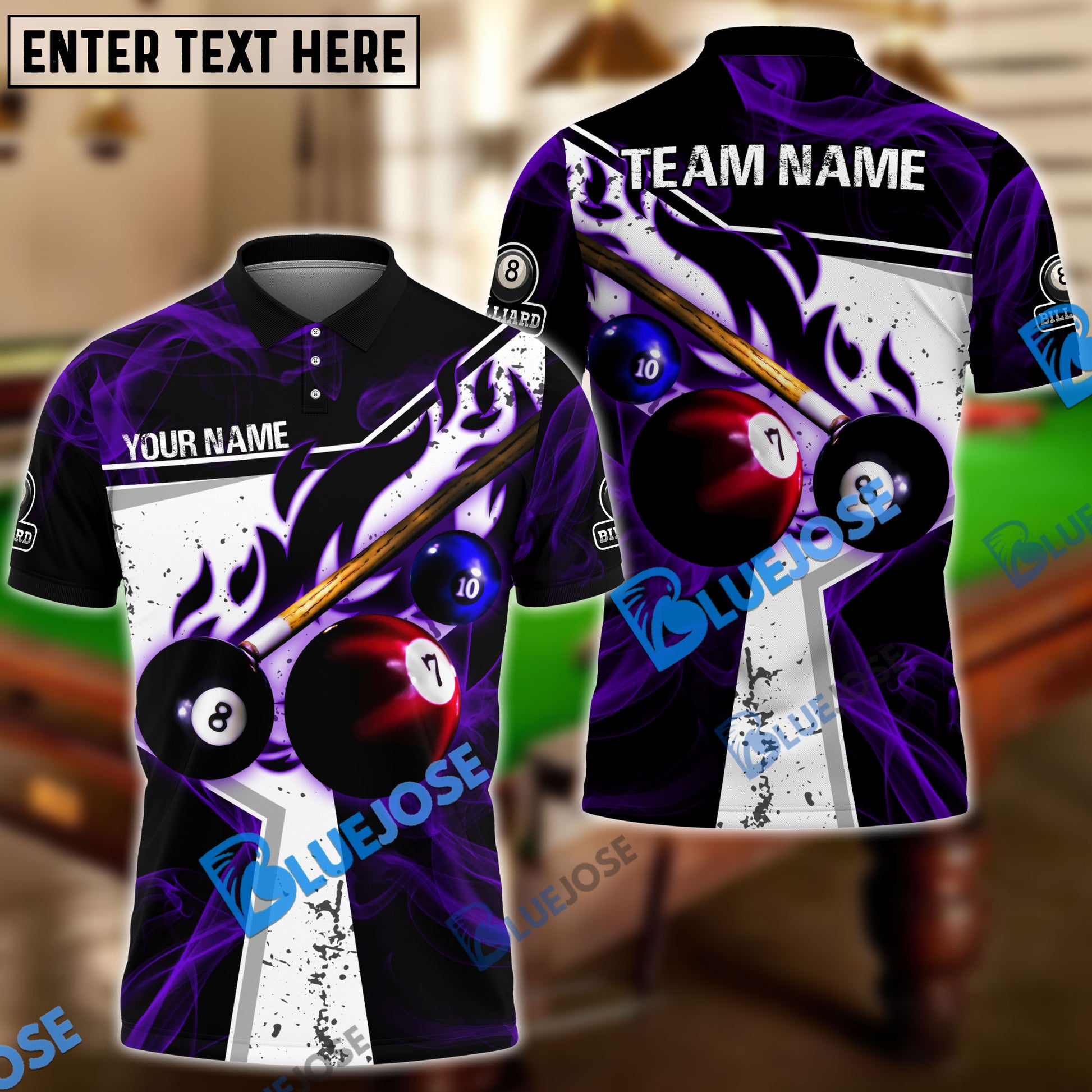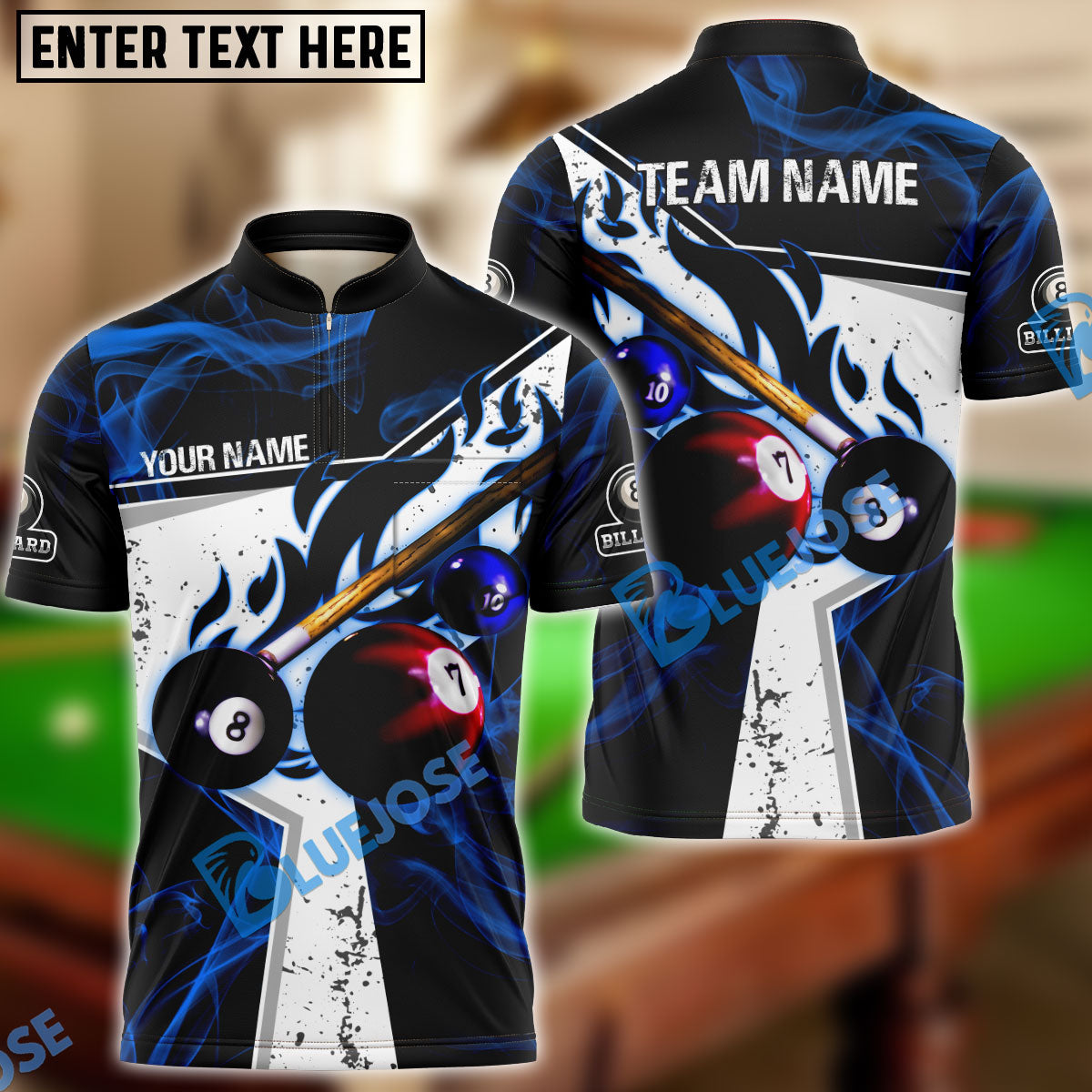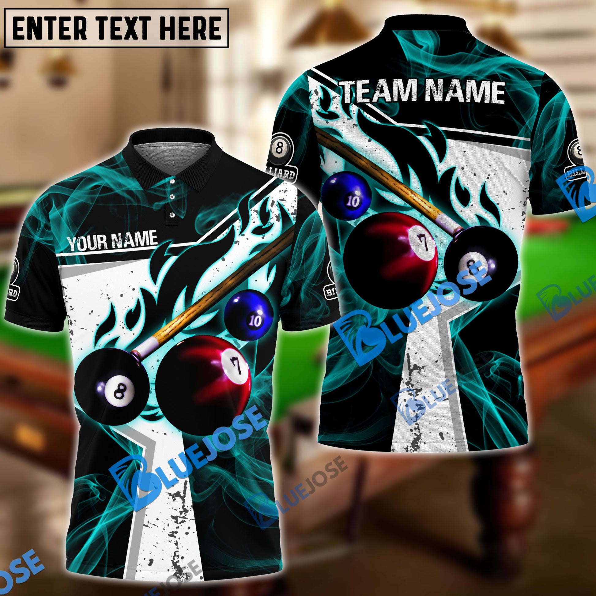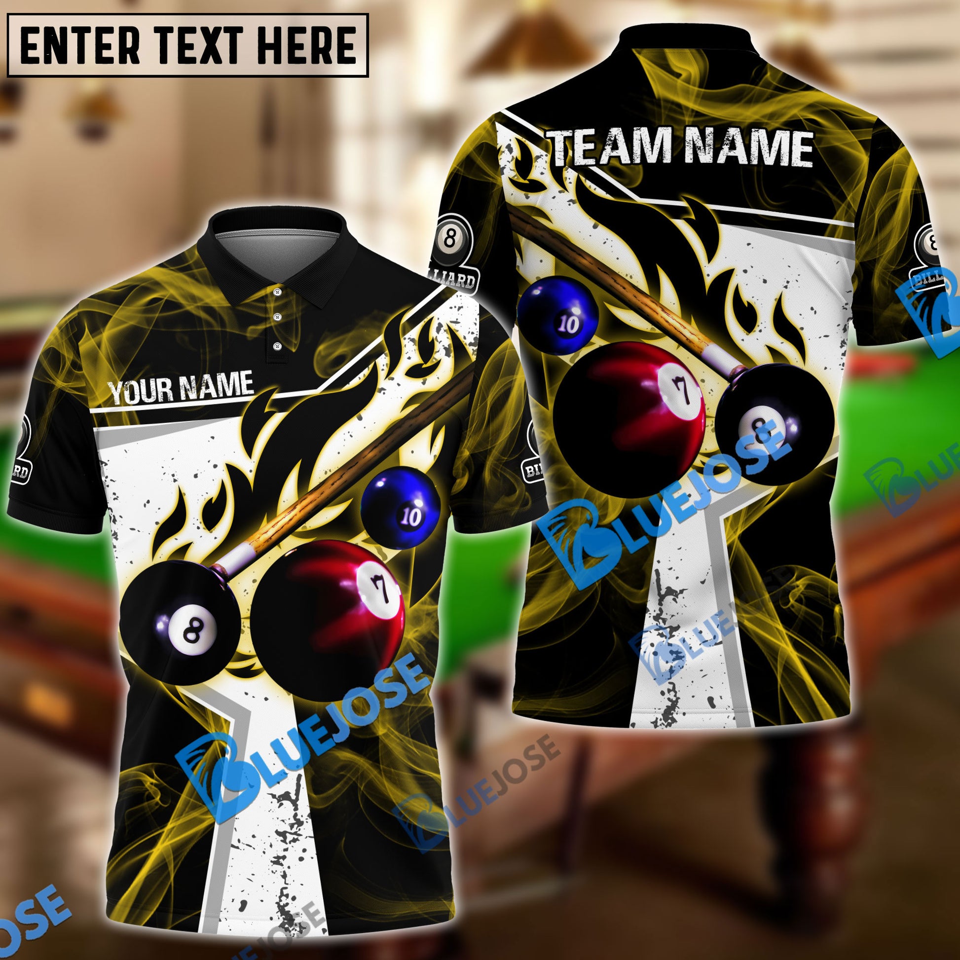 BlueJose Billiards Ball 8 Dark Flame Stroke Personalized Name, Team Name Unisex Shirt ( 6 Colors )