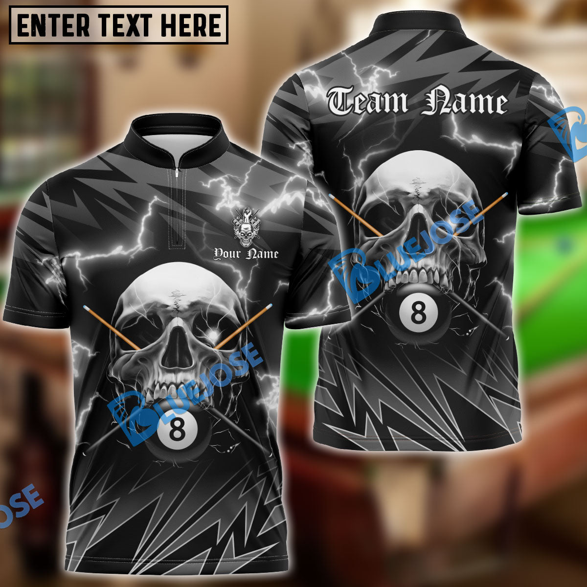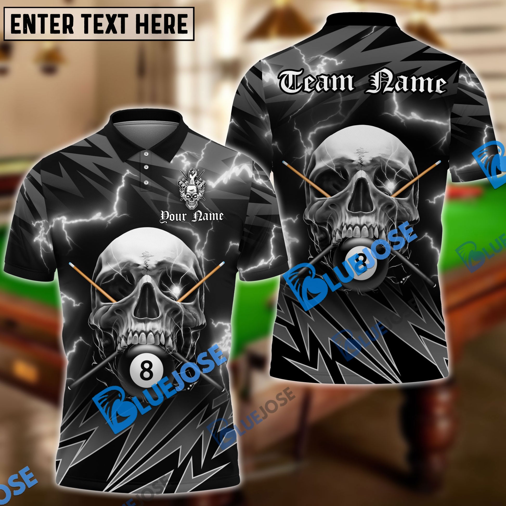 BlueJose Billiards Ball 8 Deadly Thunder Skull Personalized Name, Team Name Unisex Shirt ( 6 Colors )