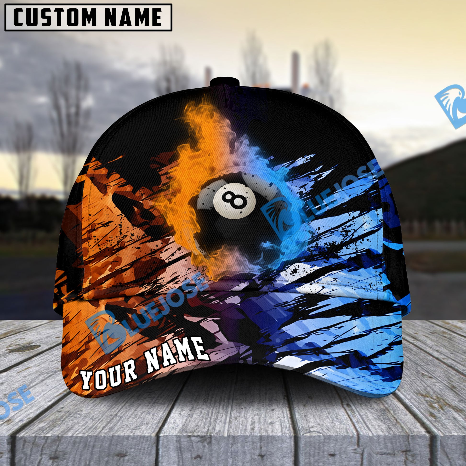 BlueJose Billiards Ball 8 Dust Flame Personalized Name Cap (4 Colors)