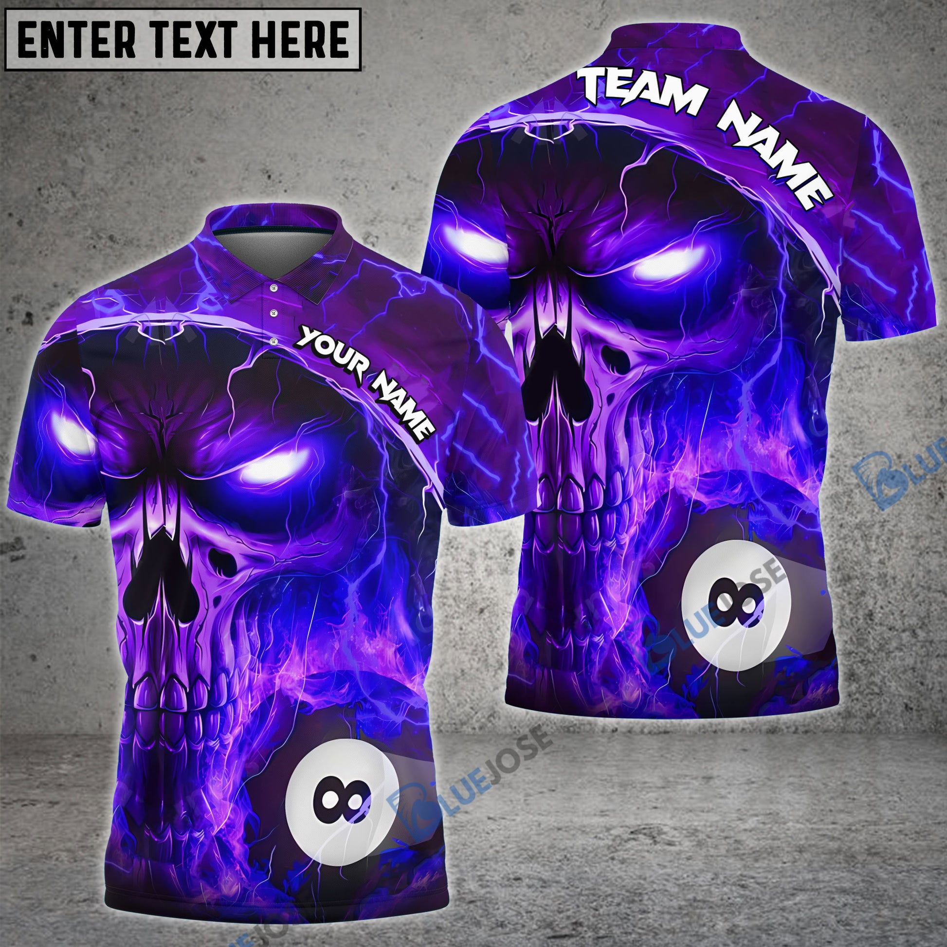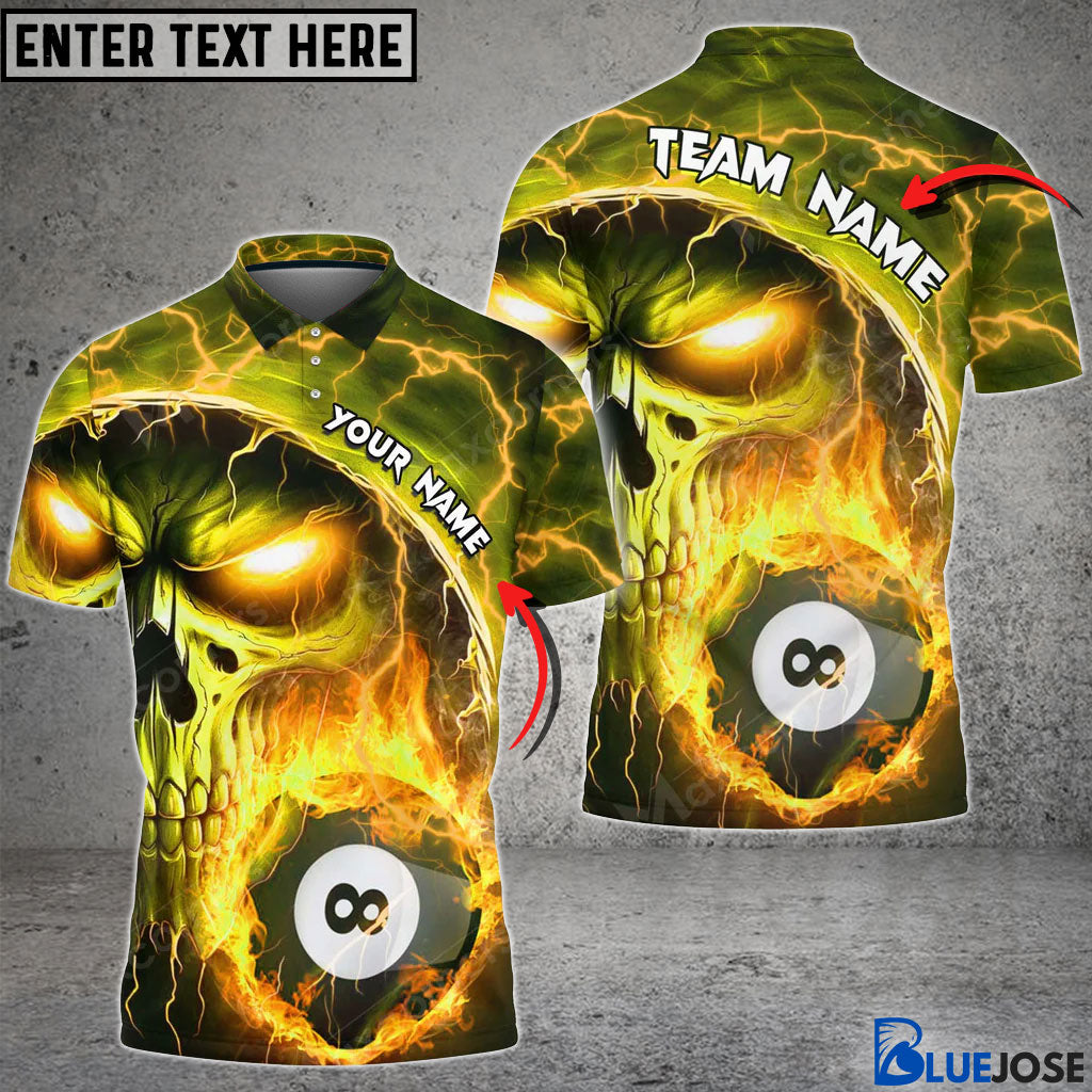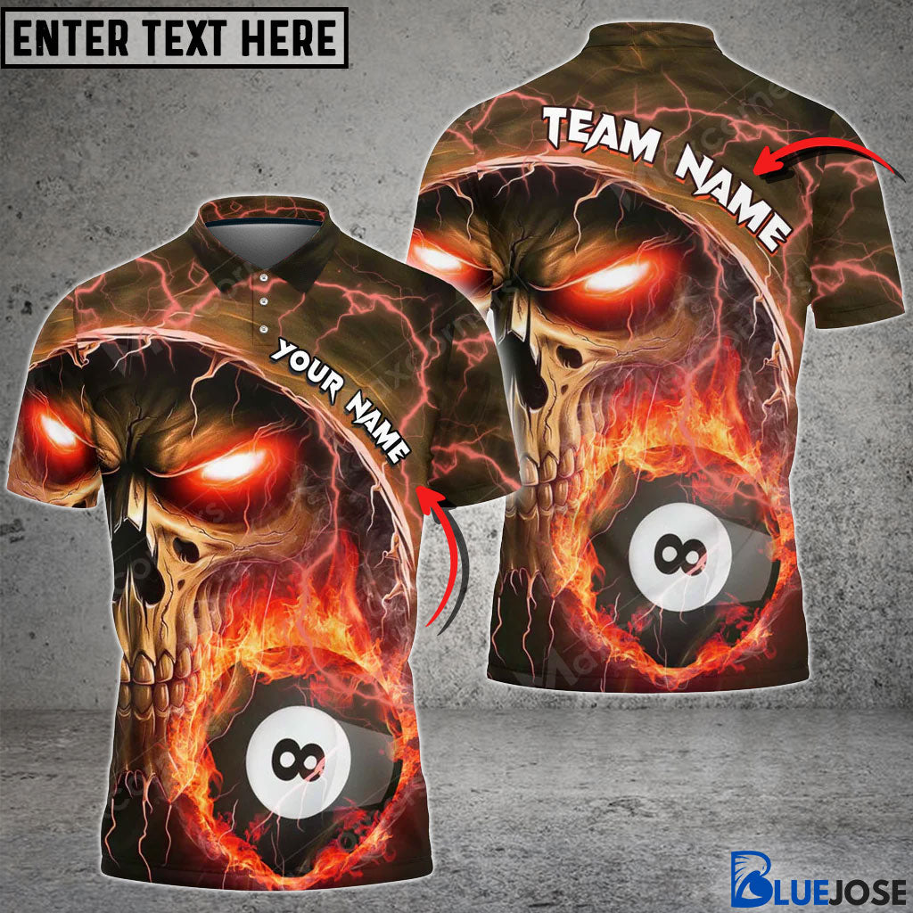 BlueJose Billiards Ball 8 Fire Personalized Name Unisex Polo Shirt (6 Colors)