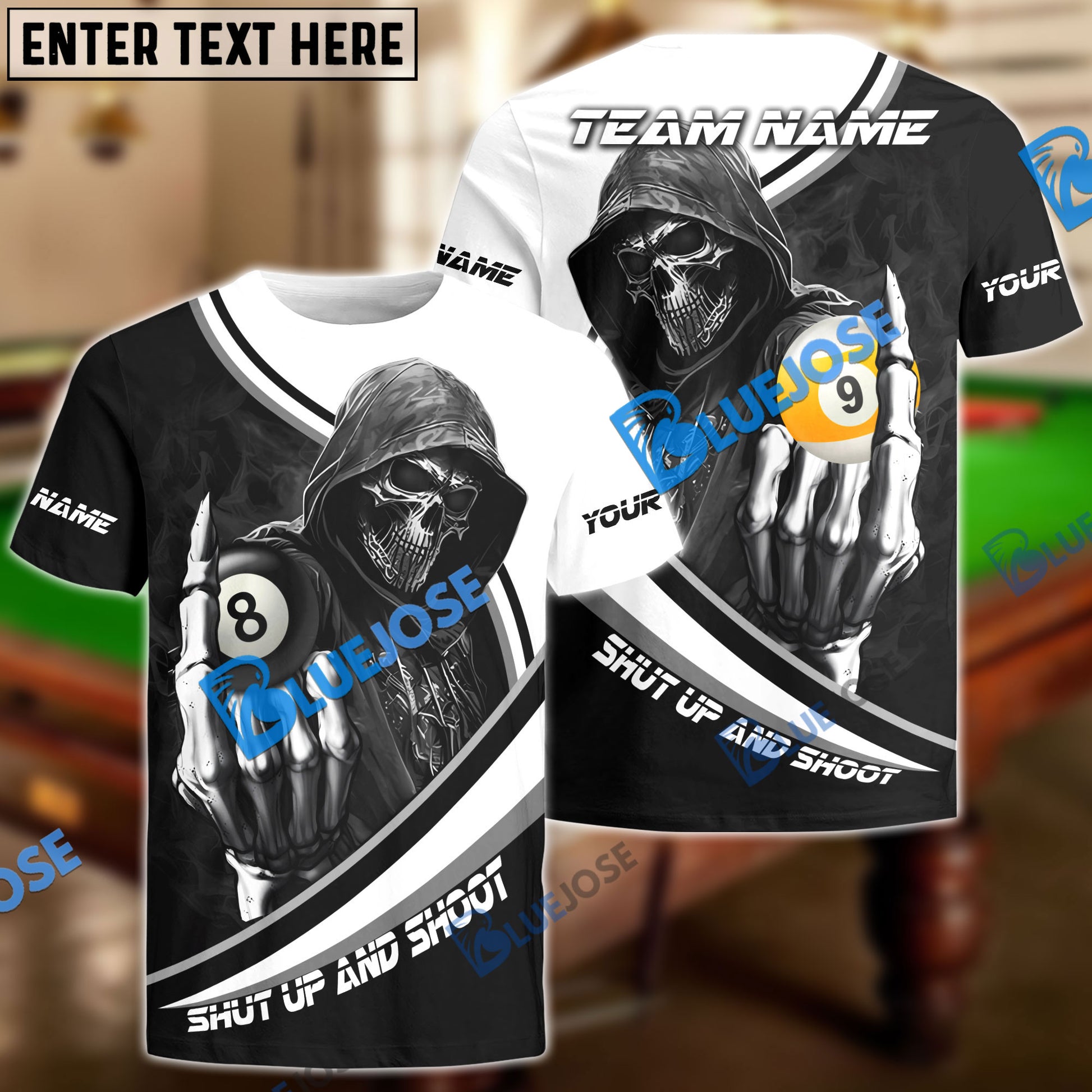 BlueJose Billiards Ball 8 And 9 Hooded Skull Personalized Name, Team Name Unisex Shirt ( 4 Colors )