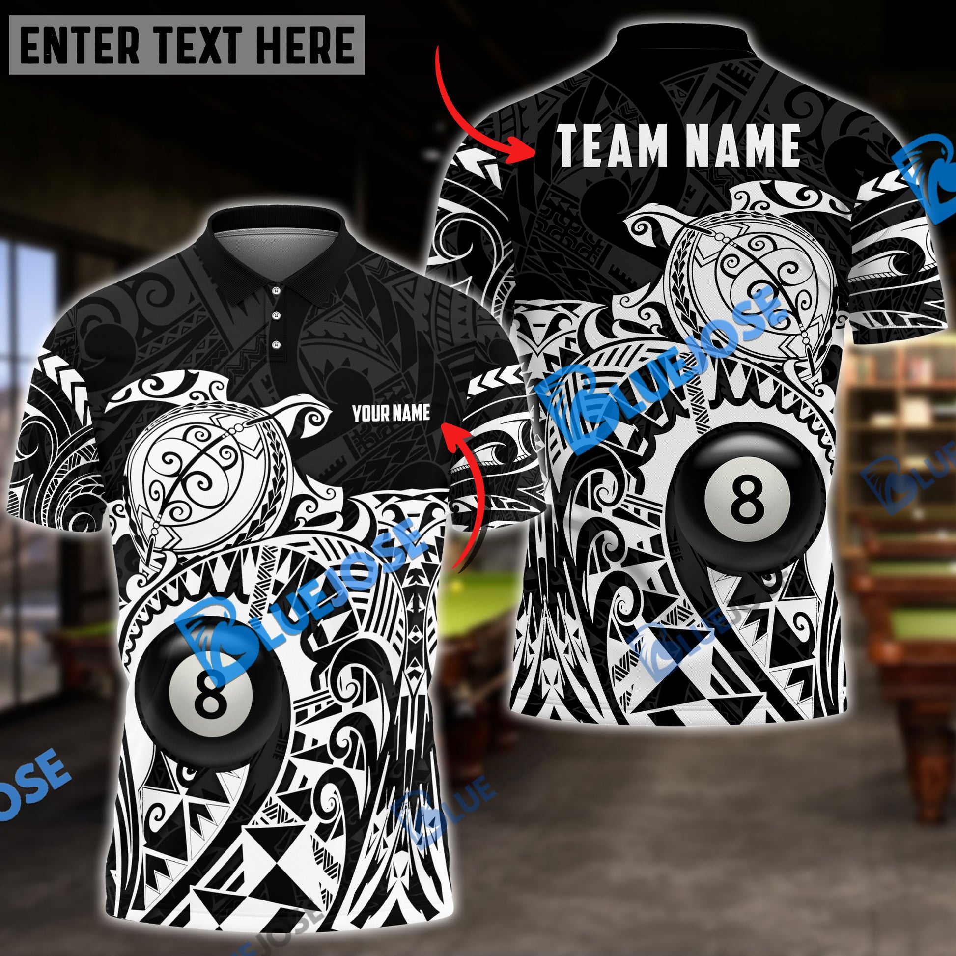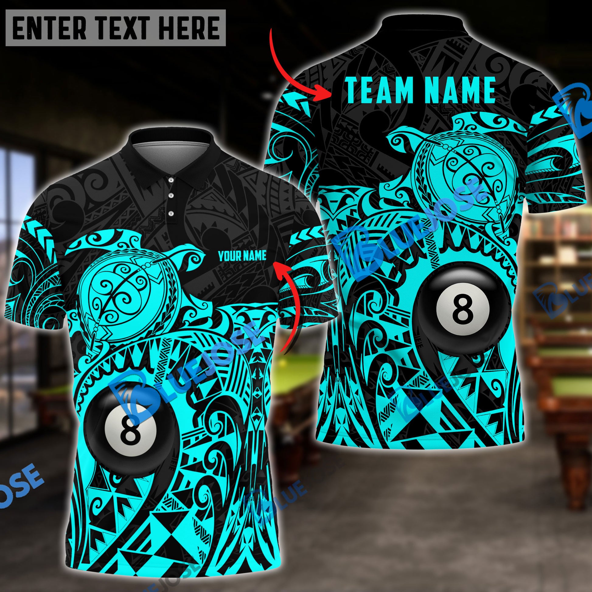 BlueJose Billiards Ball 8 Maori Turtle Personalized Name, Team Name Unisex Shirt ( 4 Colors )