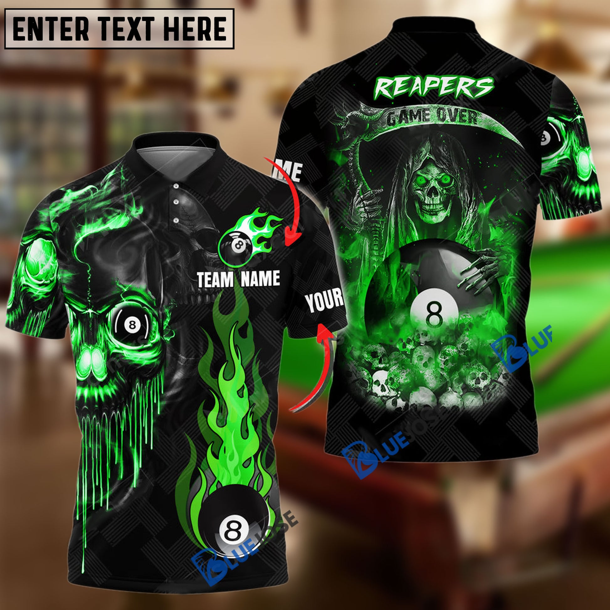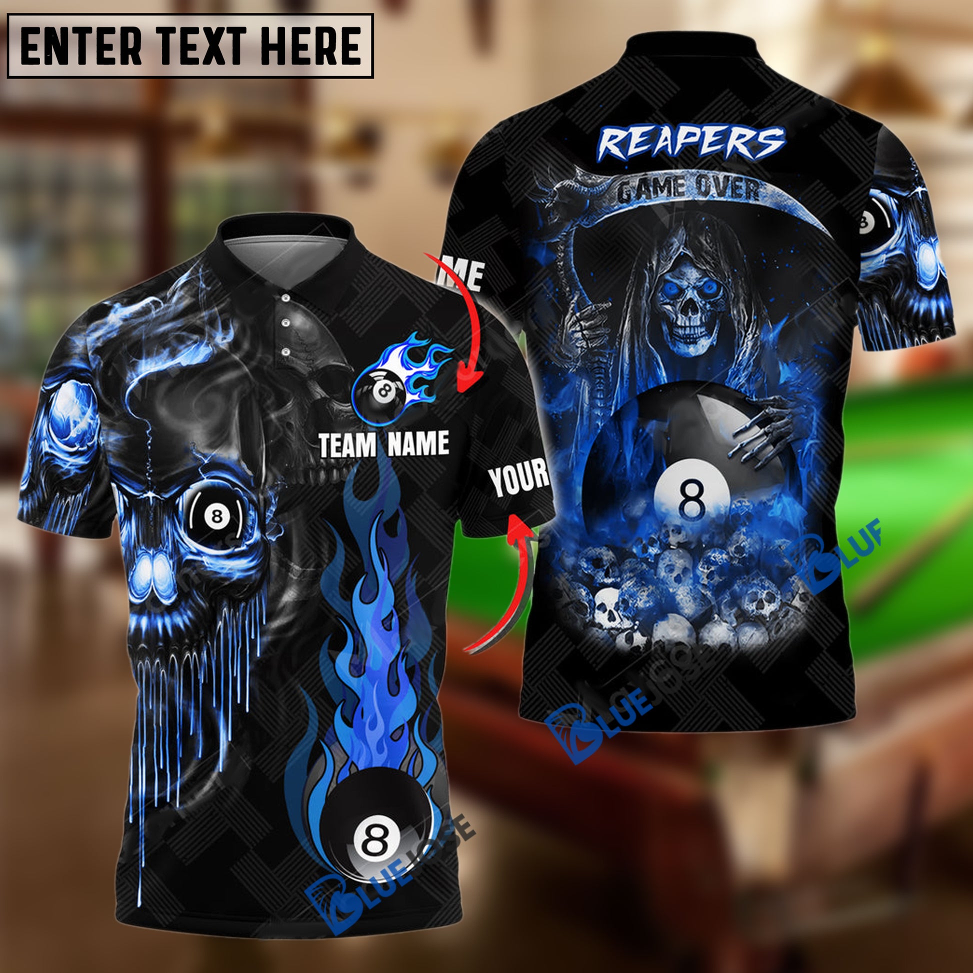 BlueJose Billiards Ball 8 Reapers Game Over Personalized Name, Team Name Unisex Shirt ( 6 Colors )