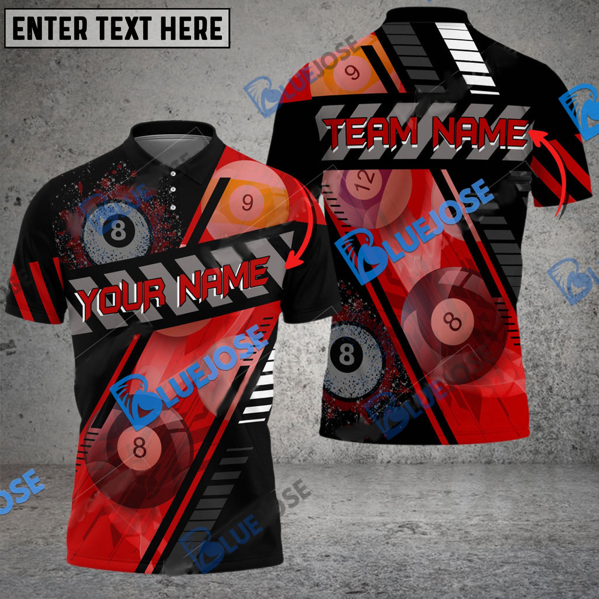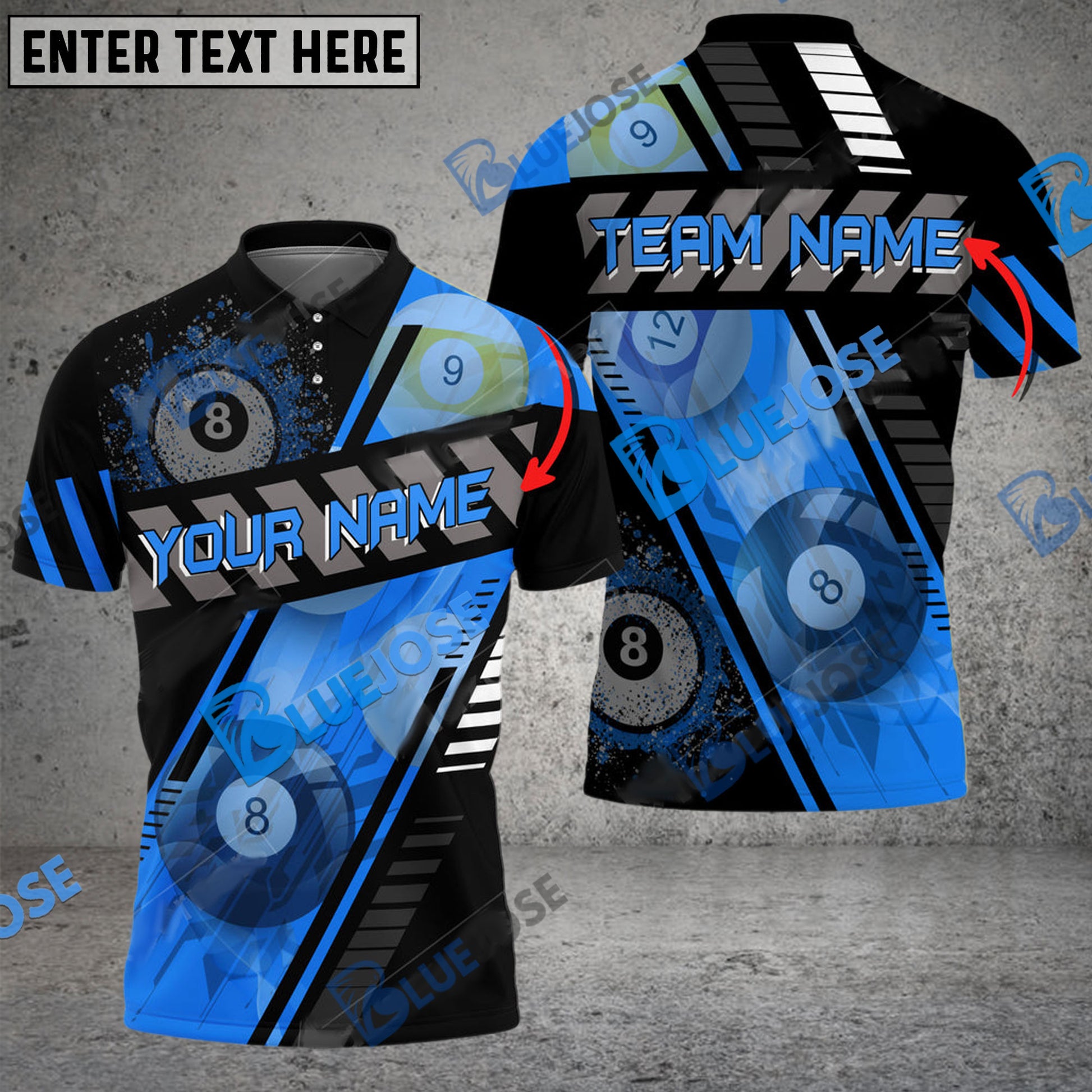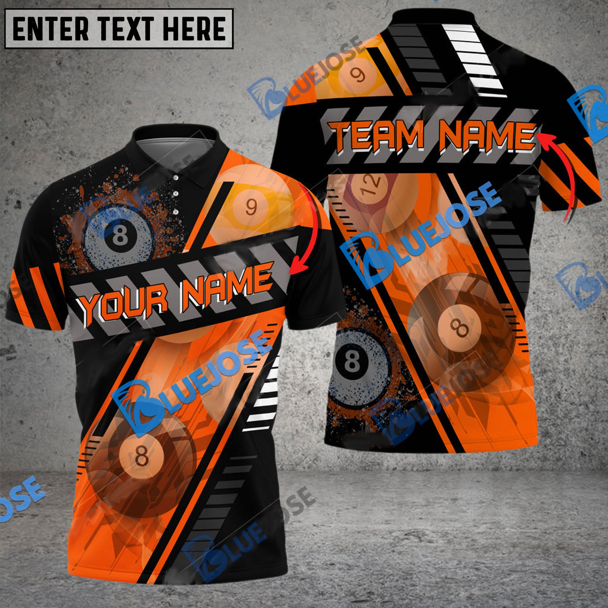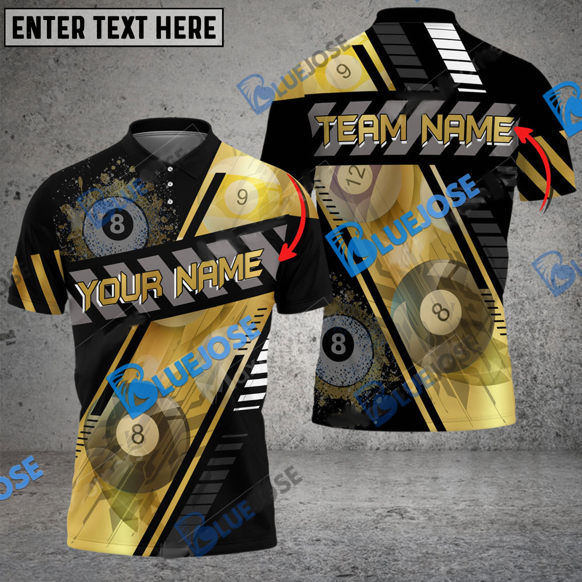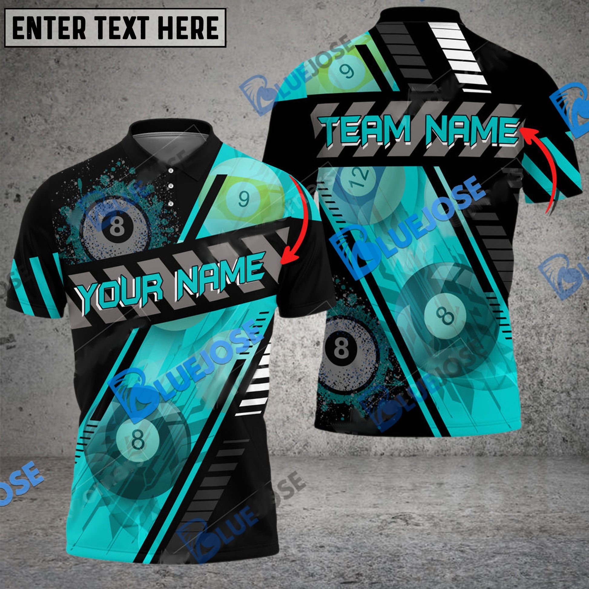 BlueJose Billiards Ball 8 Through Personalized Name, Team Name Unisex Shirt ( 6 Colors )