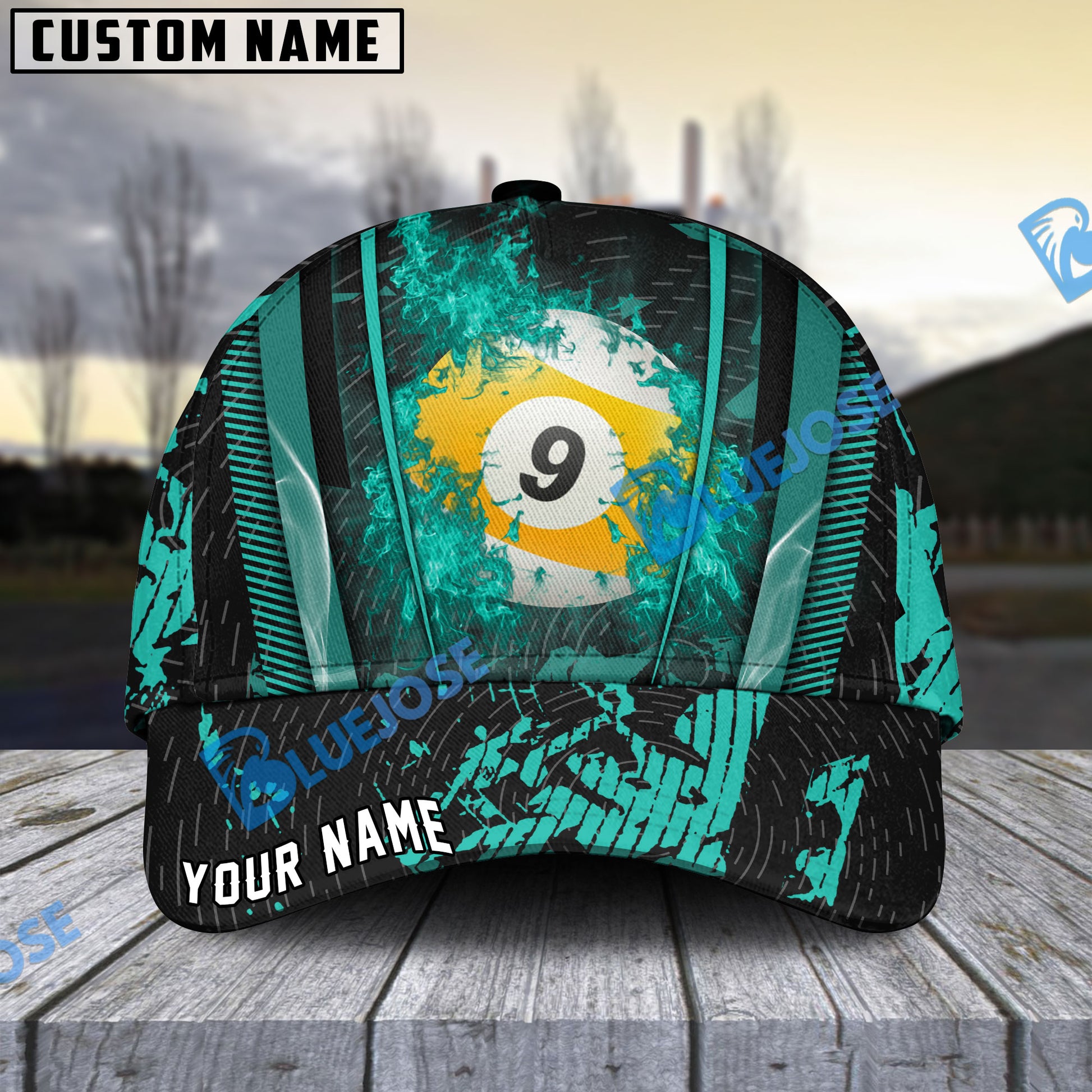 BlueJose Billiards Ball 9 Abstract Grunge Texture Personalized Name Cap (5 Colors)