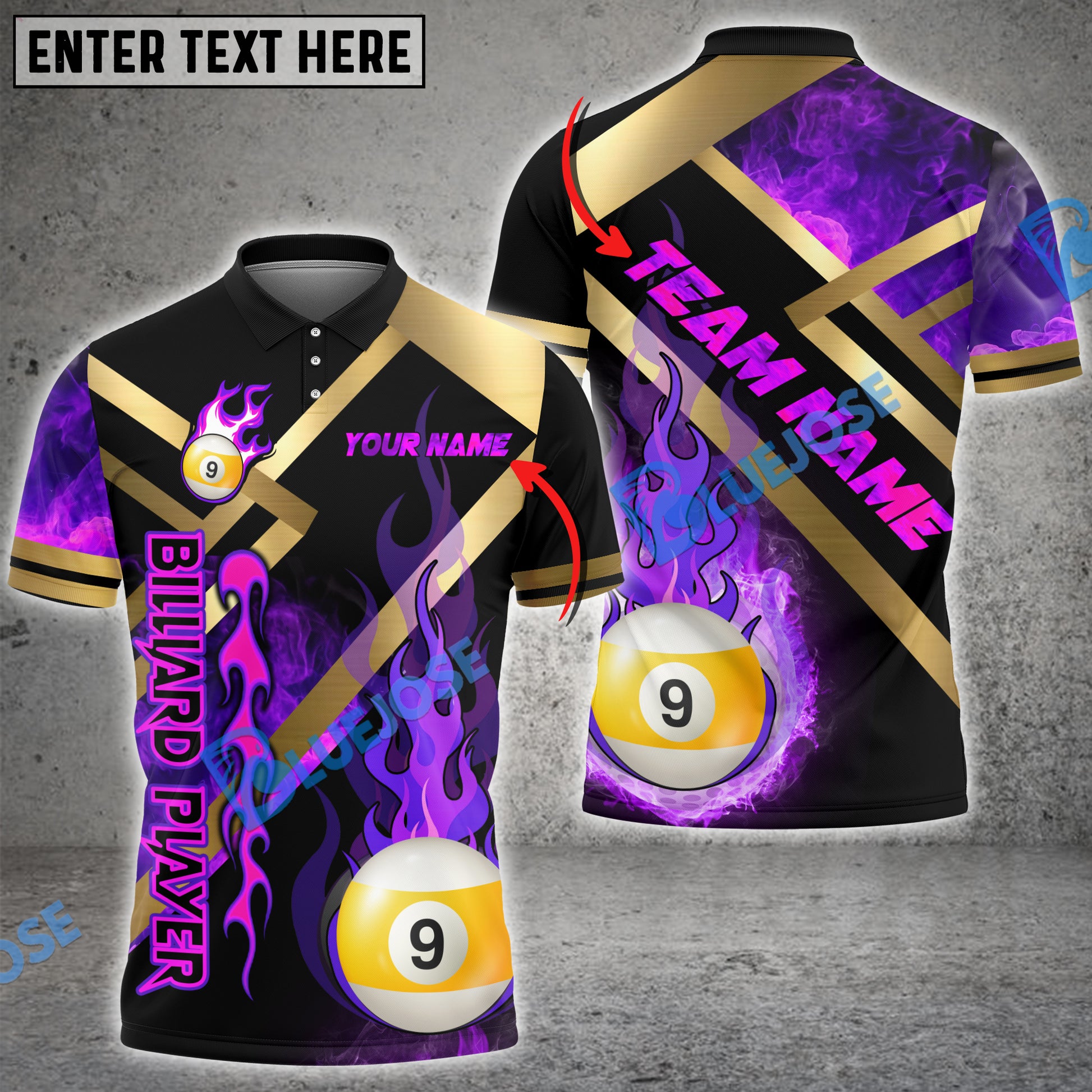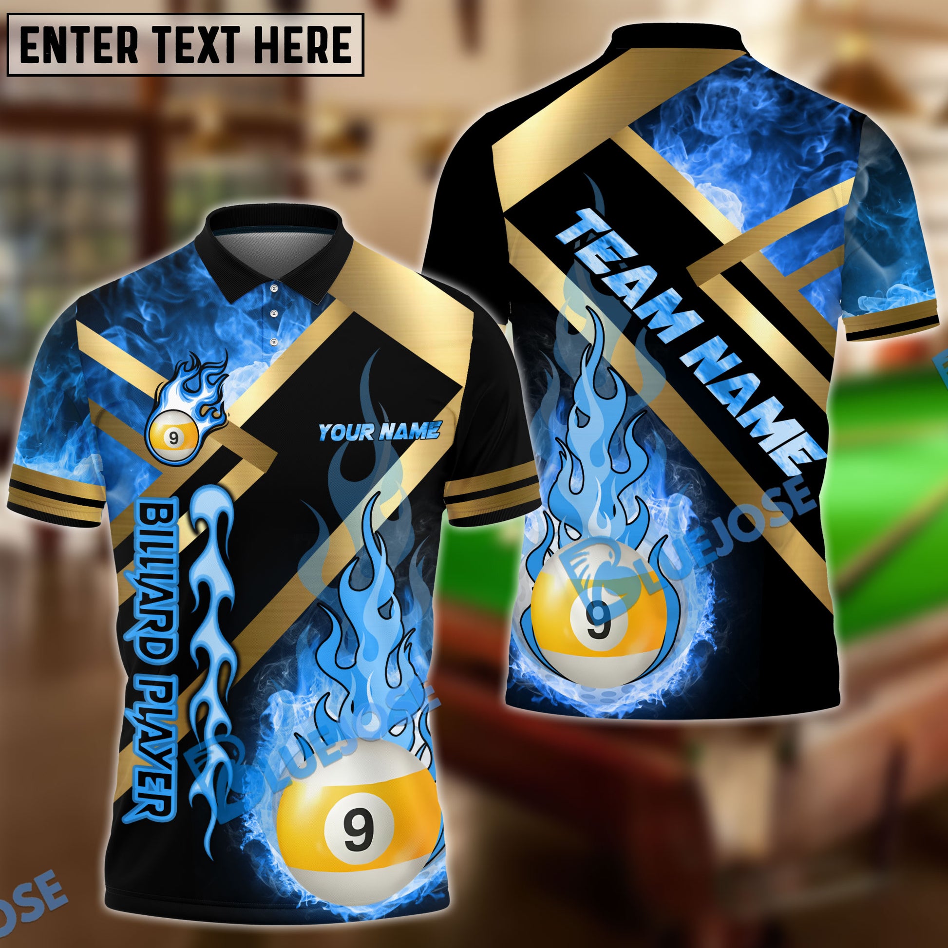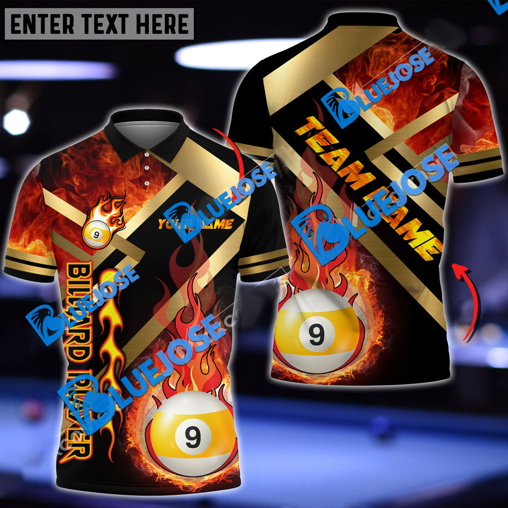 BlueJose Billiards Ball 9 Metal And Fire Flame Personalized Name, Team Name Unisex Shirt ( 4 Colors )