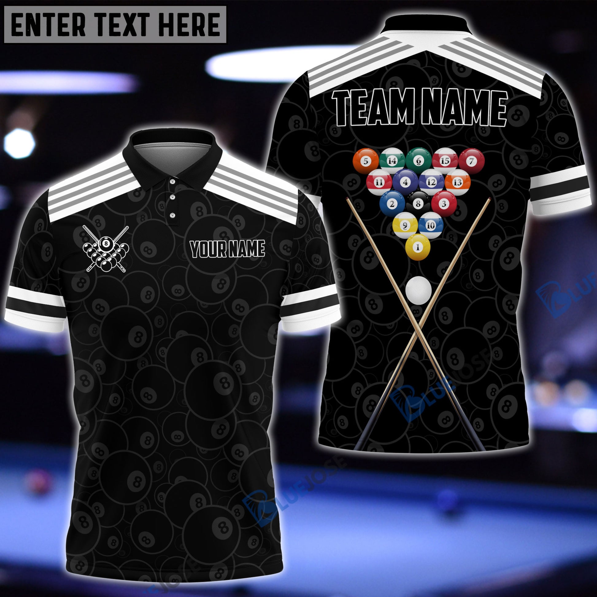 BlueJose Billiards Black & White Personalized Name Shirt