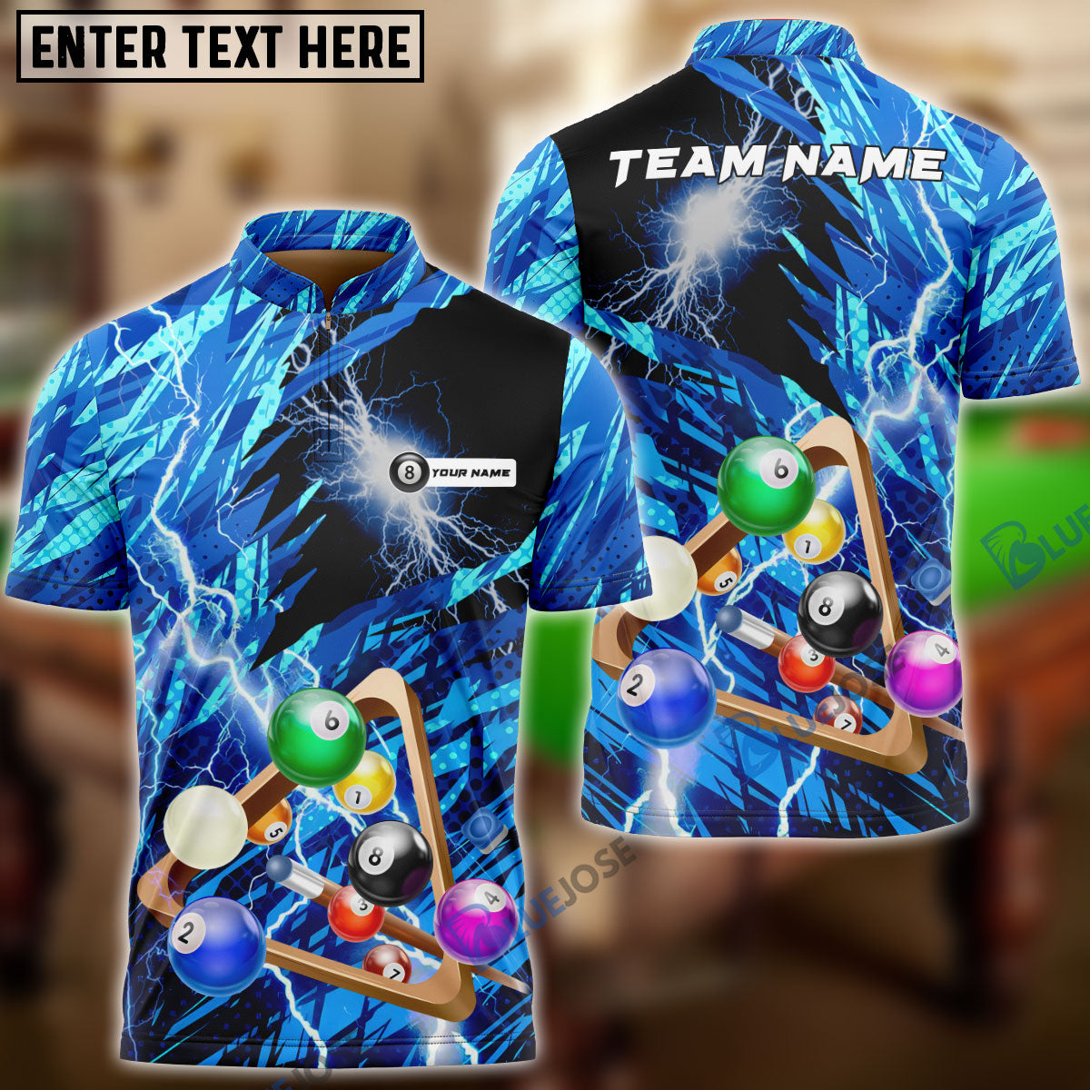 BlueJose Billiards Blue Lightning Personalized Name, Team Name Unisex Shirt