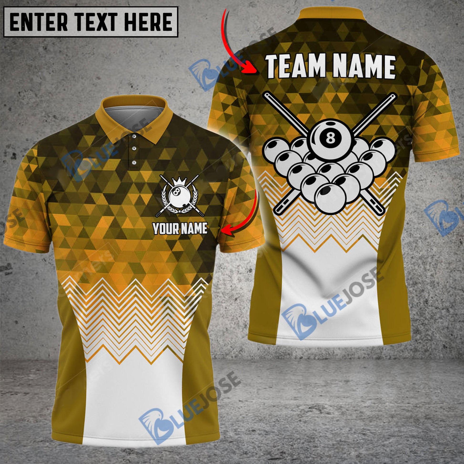BlueJose Billiards Diamond Pattern Personalized Name, Team Name Unisex Shirt ( 4 Colors )