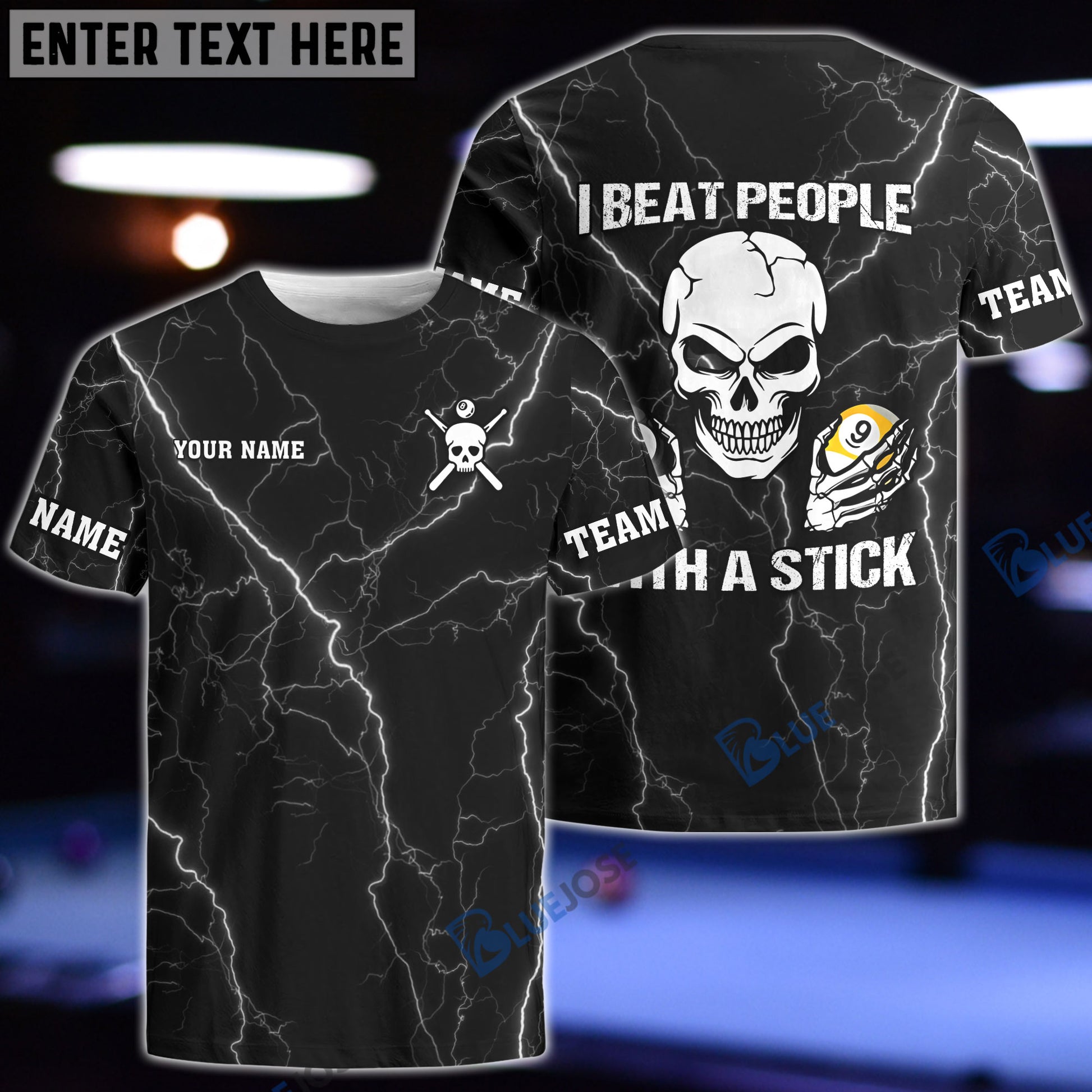 BlueJose Billiards I Beat People With A Stick Personalized Name, Team Name Unisex Shirt
