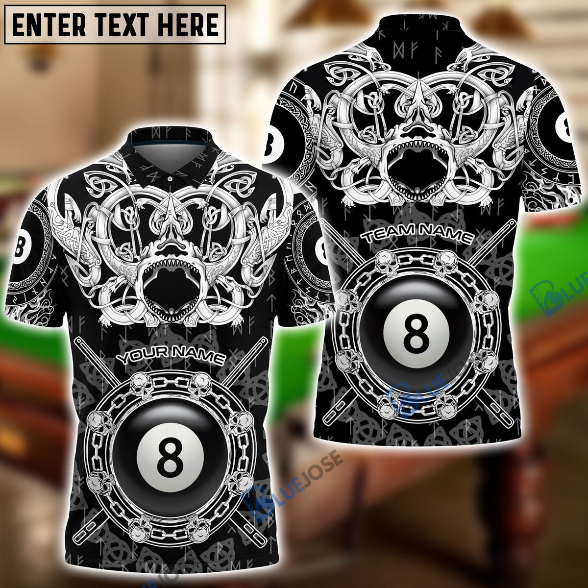 BlueJose Billiards Viking Shark Head Pattern Personalized Name, Team Name Shirt